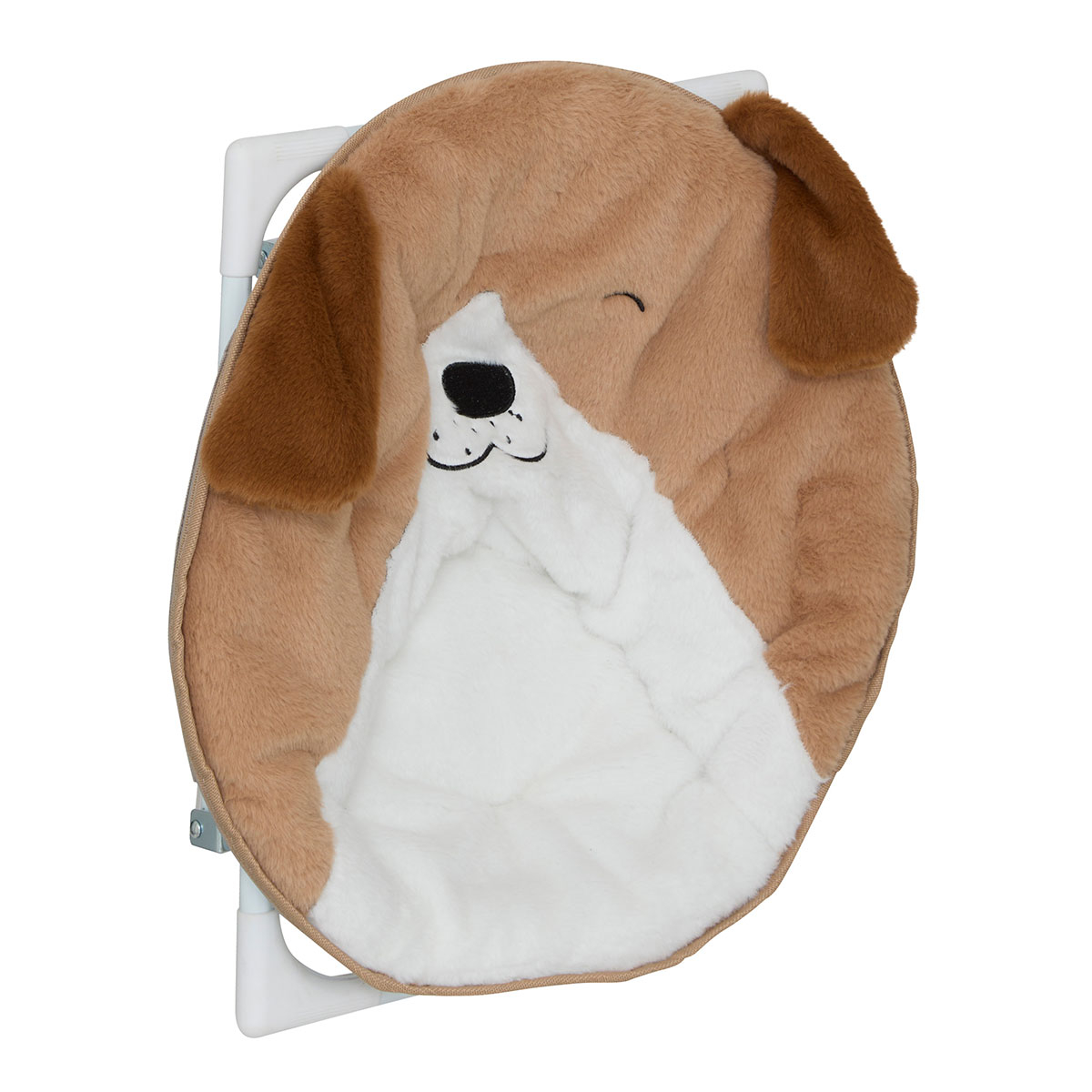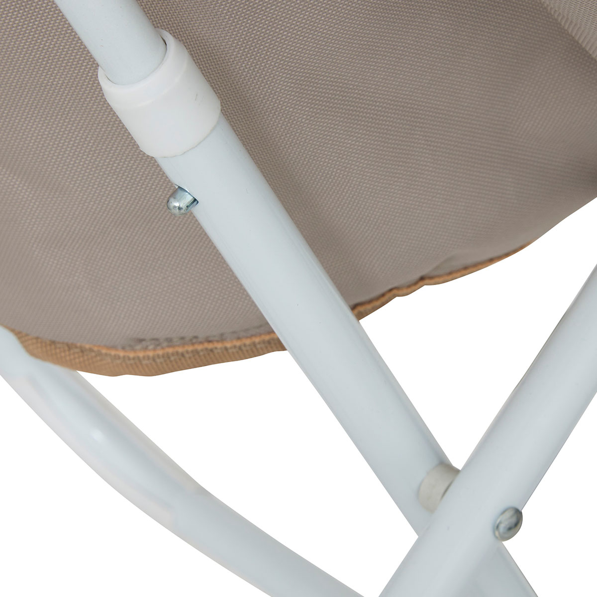 Παιδική καρέκλα ιδανική για να κάθεται το παιδί σας κατά τις ώρες του παιχνιδιού. Ο σκελετός της είναι μεταλλικός σε λευκό χρώμα. Το κάθισμα είναι από λευκό και καφέ βελουτέ ύφασμα με σχέδιο σκυλάκι. Είναι πολύ πρακτική για χρήση σε εσωτερικό χώρο καθώς ανοίγει και κλείνει με μία κίνηση. Αντοχή βάρους έως 30 κιλά. *Το υφασμάτινο κάλυμμα δεν αφαιρείται.*