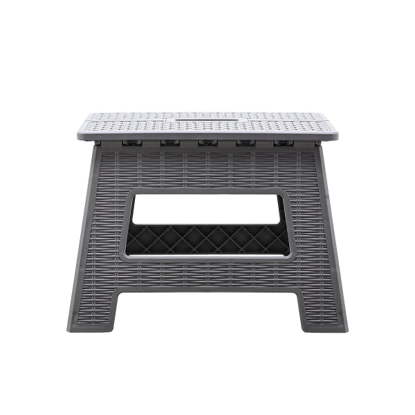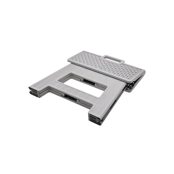 Βοηθητικό σκαλοπάτι - σκαμπό σε γκρι χρώμα από την εταιρεία εstia. Είναι κατασκευασμένο από ανθεκτικό πλαστικό υλικό με αντιολισθητική επιφάνεια για πάτημα. Ο πτυσσόμενος μηχανισμός που διαθέτει για να διπλώνει το καθιστά εύκολο στη μεταφορά και στην αποθήκευση. Ιδανικό σκαμνάκι για να φτάνετε στα πιο ψηλά σημεία του σπιτιού. Μπορεί να χρησιμοποιηθεί και σαν σκαμπό στη κουζίνα ή στο σαλόνι σας. Βάρος αντοχής: 150 κιλά.