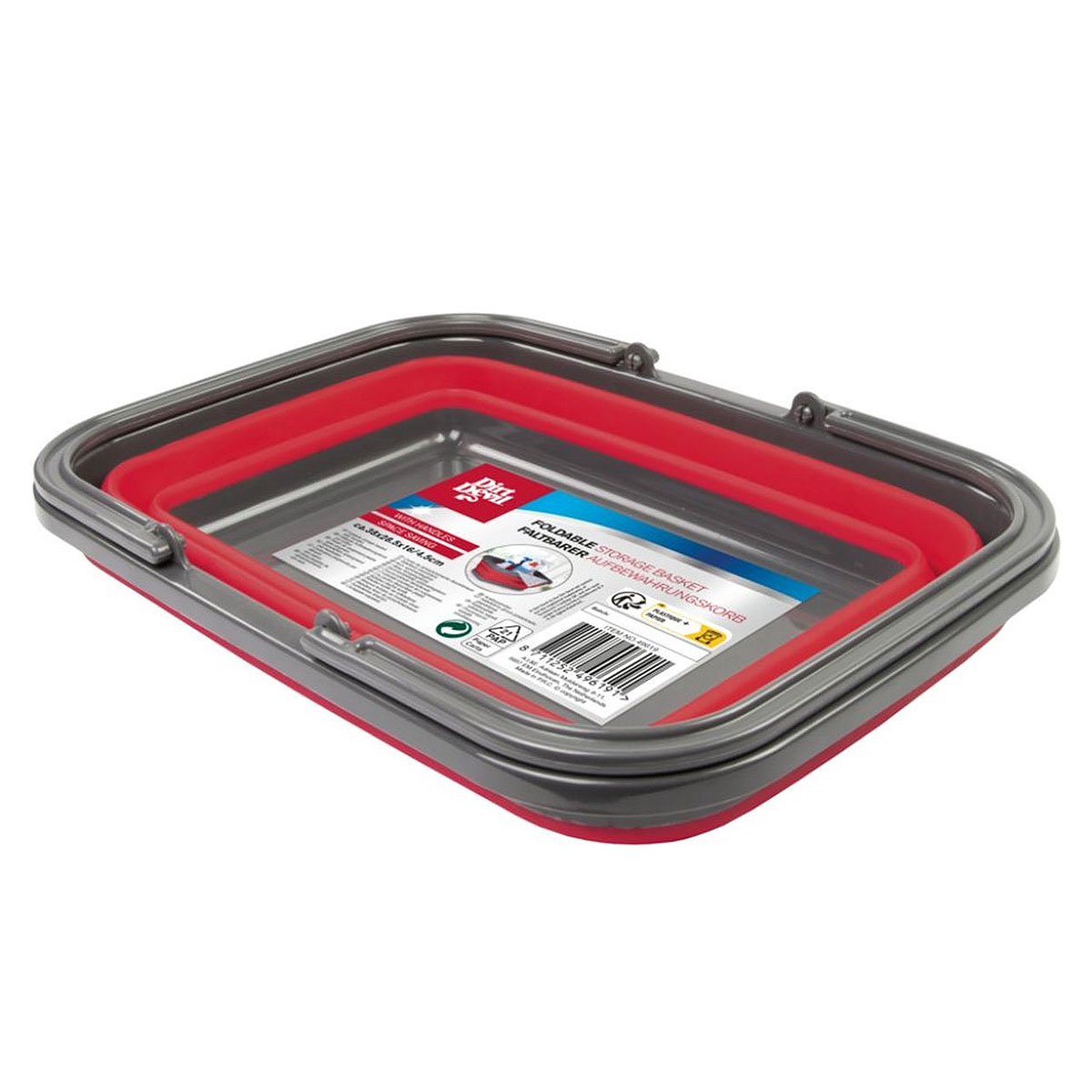 Λεκάνη γενικής χρήσης από πλαστικό υλικό σε κόκκινο χρώμα με γκρι λεπτομέρειες. Είναι πτυσσόμενη με ύψος 4.5εκ. όταν είναι κλειστή, για να αποθηκεύεται εύκολα χωρίς να πιάνει χώρο. Διαθέτει λαβές για εύκολη μεταφορά. Ιδανικό λεκανάκι για καθαριότητες ή για μανταλάκια. Χωρητικότητα 17L.