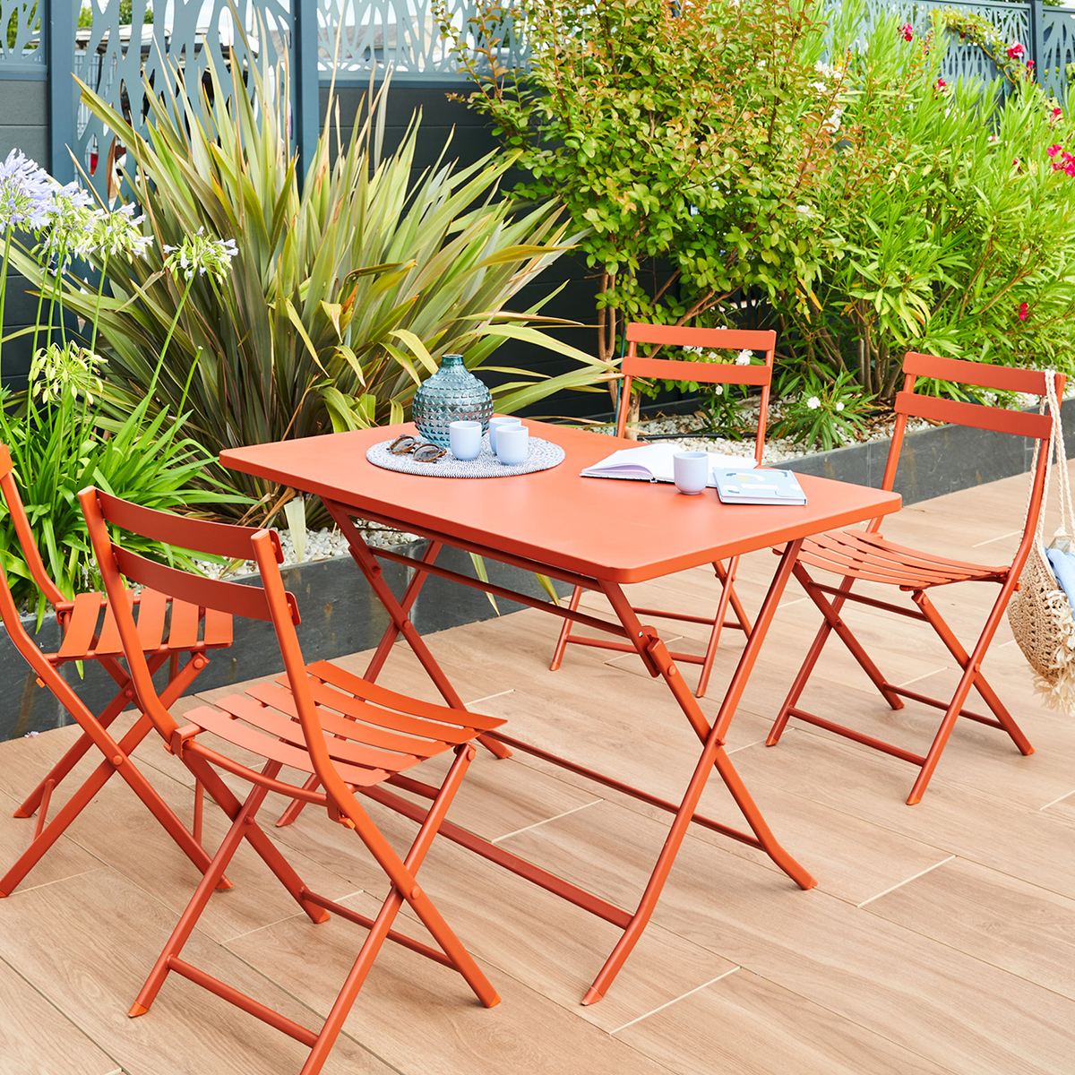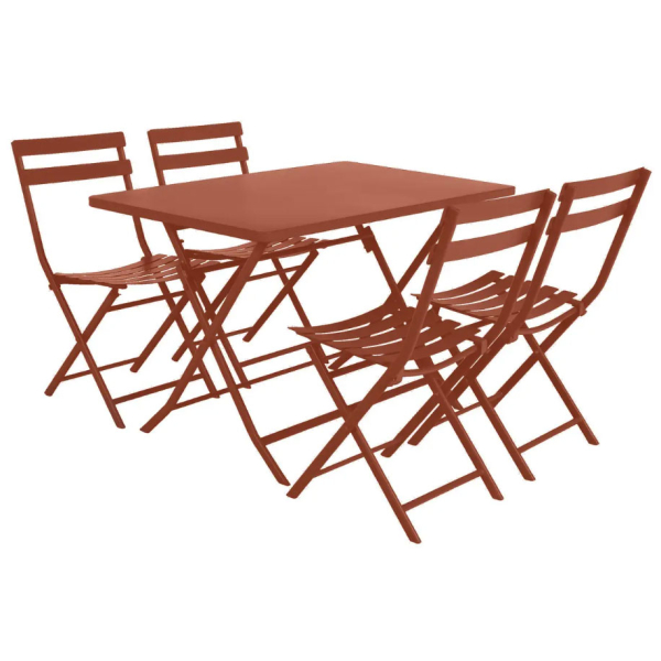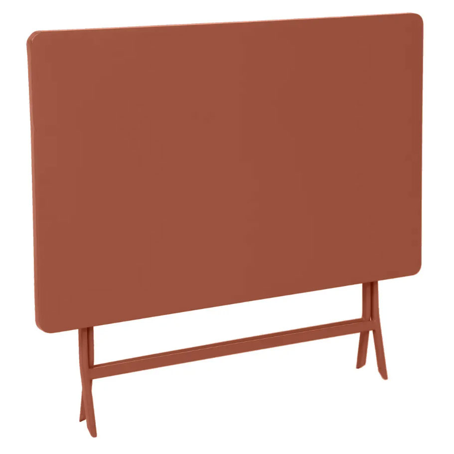 Μεταλλικό τραπέζι εξωτερικού χώρου σε απόχρωση τερακότας, με εύκολη αναδίπλωση για εξοικονόμηση χώρου τις ώρες που δεν το χρησιμοποιείτε. Είναι κατασκευασμένο από από υψηλής ποιότητας, ανθεκτικά υλικά και με ειδική επεξεργασία που αποτρέπει την οξείδωση, τη διάβρωση και την σκουριά. Το χρώμα του δεν αλλοιώνεται από την επαφή με τον ήλιο και αυτό το καθιστά ιδανικό για το μπαλκόνι, τον κήπο ή την βεράντα. Συνδυάστε το με τις καρέκλες του ίδιου χρώματος για να δημιουργήσετε ένα αρμονικό αποτέλεσμα.