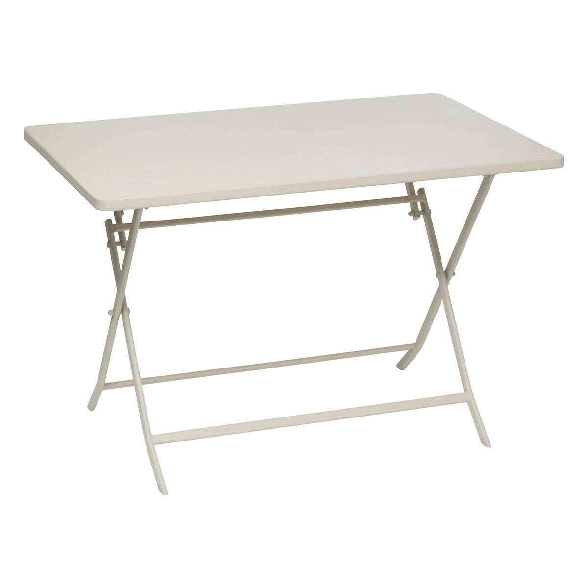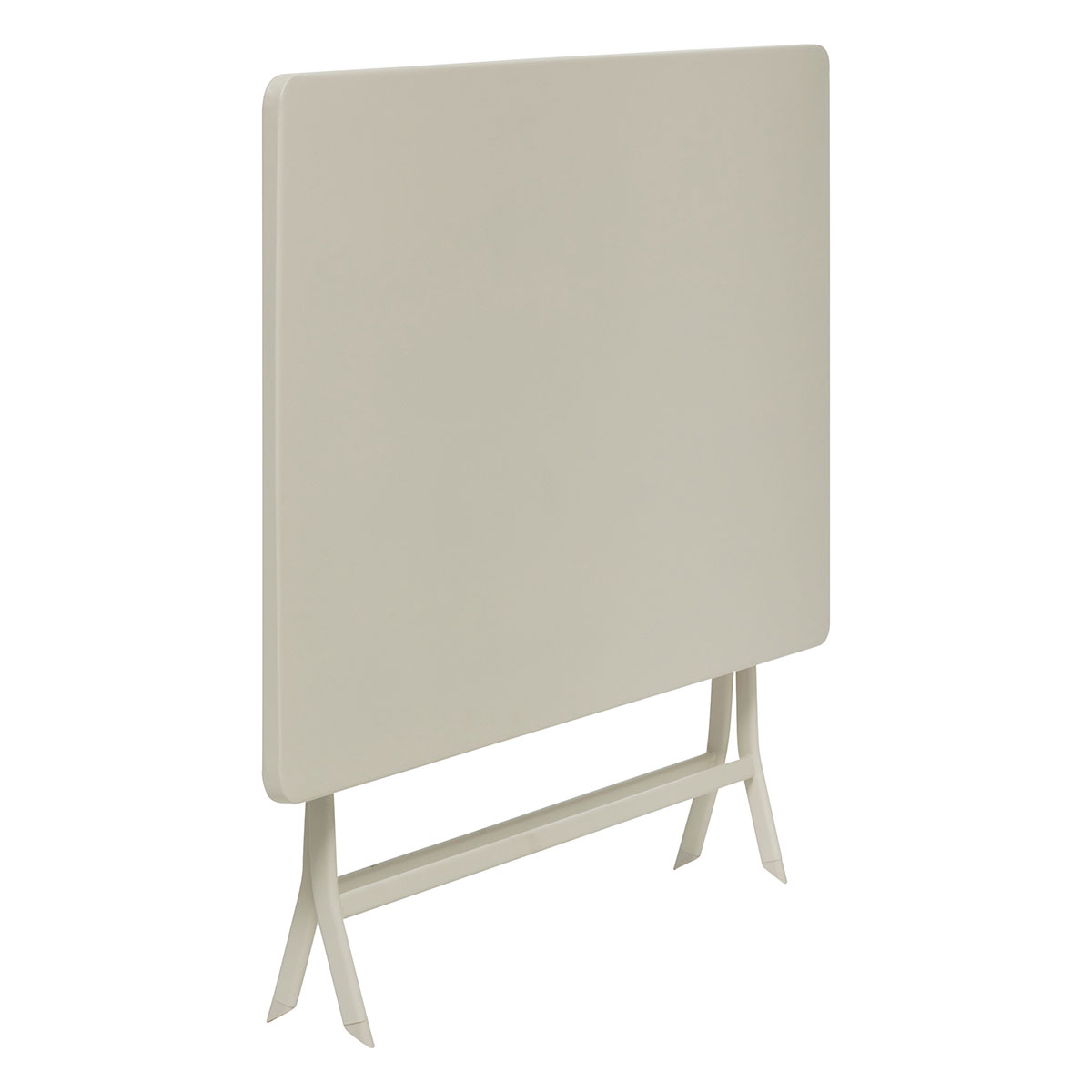 Μεταλλικό τραπέζι εξωτερικού χώρου σε εκρού απόχρωση, με εύκολη αναδίπλωση για εξοικονόμηση χώρου τις ώρες που δεν το χρησιμοποιείτε. Είναι κατασκευασμένο από από υψηλής ποιότητας, ανθεκτικά υλικά και με ειδική επεξεργασία που αποτρέπει την οξείδωση, τη διάβρωση και την σκουριά. Το χρώμα του δεν αλλοιώνεται από την επαφή με τον ήλιο και αυτό το καθιστά ιδανικό για το μπαλκόνι, τον κήπο ή την βεράντα. Συνδυάστε το με τις καρέκλες του ίδιου χρώματος για να δημιουργήσετε ένα αρμονικό αποτέλεσμα.