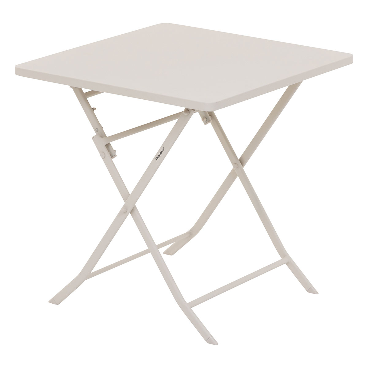 Μεταλλικό τραπέζι εξωτερικού χώρου σε εκρού χρώμα, με εύκολη αναδίπλωση για εξοικονόμηση χώρου. Είναι κατασκευασμένο από από υψηλής ποιότητας, ανθεκτικά υλικά και με ειδική επεξεργασία που αποτρέπει την οξείδωση, τη διάβρωση και την σκουριά. Το χρώμα του δεν αλλοιώνεται από την επαφή με τον ήλιο και αυτό το καθιστά ιδανικό για το μπαλκόνι, τον κήπο ή την βεράντα. Συνδυάστε το με τις καρέκλες του ίδιου χρώματος για να δημιουργήσετε ένα αρμονικό αποτέλεσμα.