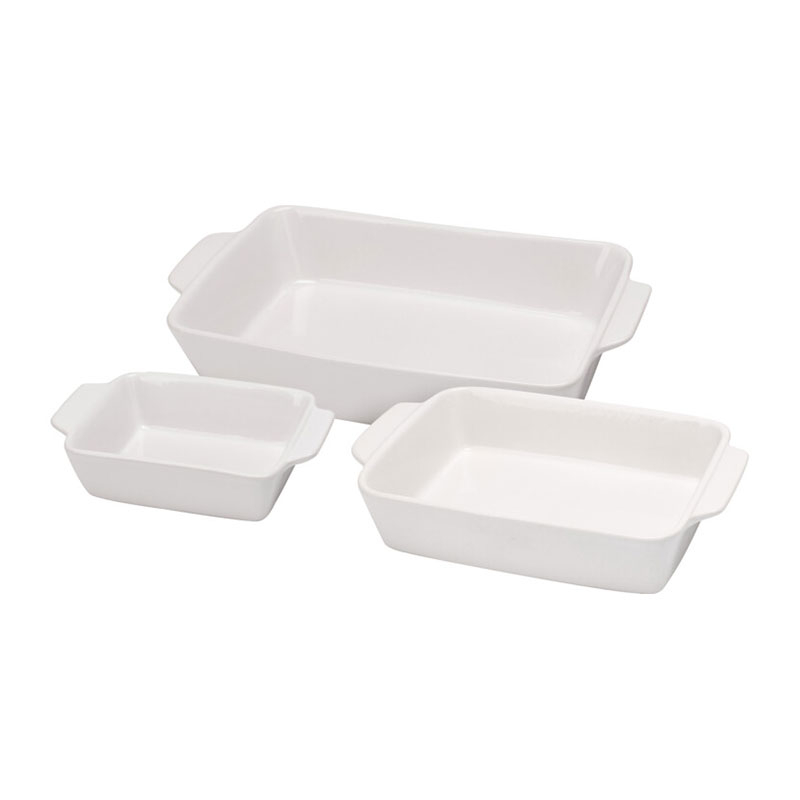 Πυρίμαχα σκεύη ορθογώνια σε λευκό χρώμα. Είναι κατασκευασμένα από κεραμικό υλικό προσφέροντας μεγάλη αντοχή σε υψηλές θερμοκρασίας. Είναι κατάλληλα για να ψήσουν το φαγητό ή το γλυκό σας στον φούρνο της κουζίνας. Είναι ιδανικά και για ψυγείο χάρη στην ανθεκτική τους κατασκευή. Μπορούν να χρησιμοποιηθούν και ως σκεύη σερβιρίσματος για το καθημερινό ή το εορταστικό σας τραπέζι.