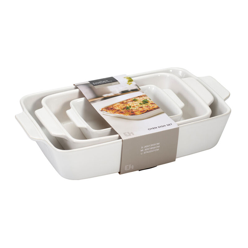 • Τεμάχια: 1 Πυρίμαχο Σκεύος 20εκ.Μx13εκ.Πx5εκ.Υ, 1 Πυρίμαχο Σκεύος 30εκ.Μx18εκ.Πx6εκ.Υ, 1 Πυρίμαχο Σκεύος 37εκ.Μx22εκ.Πx7εκ.Υ
