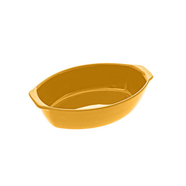 Πυρίμαχο σκεύος οβάλ σε κίτρινο χρώμα. Είναι κατασκευασμένο από κεραμικό υλικό προσφέροντας μεγάλη αντοχή σε υψηλές θερμοκρασίας. Το σκεύος είναι κατάλληλο για φούρνο κουζίνας (έως 250°) και φούρνο μικροκυμάτων. Είναι ιδανικό και για ψυγείο ή κατάψυξη (έως -18°). Χάρη στο μοντέρνο σχεδιασμό του μπορεί να χρησιμοποιηθεί και ως σκεύος σερβιρίσματος. Χωρητικότητα: 1.6lt
