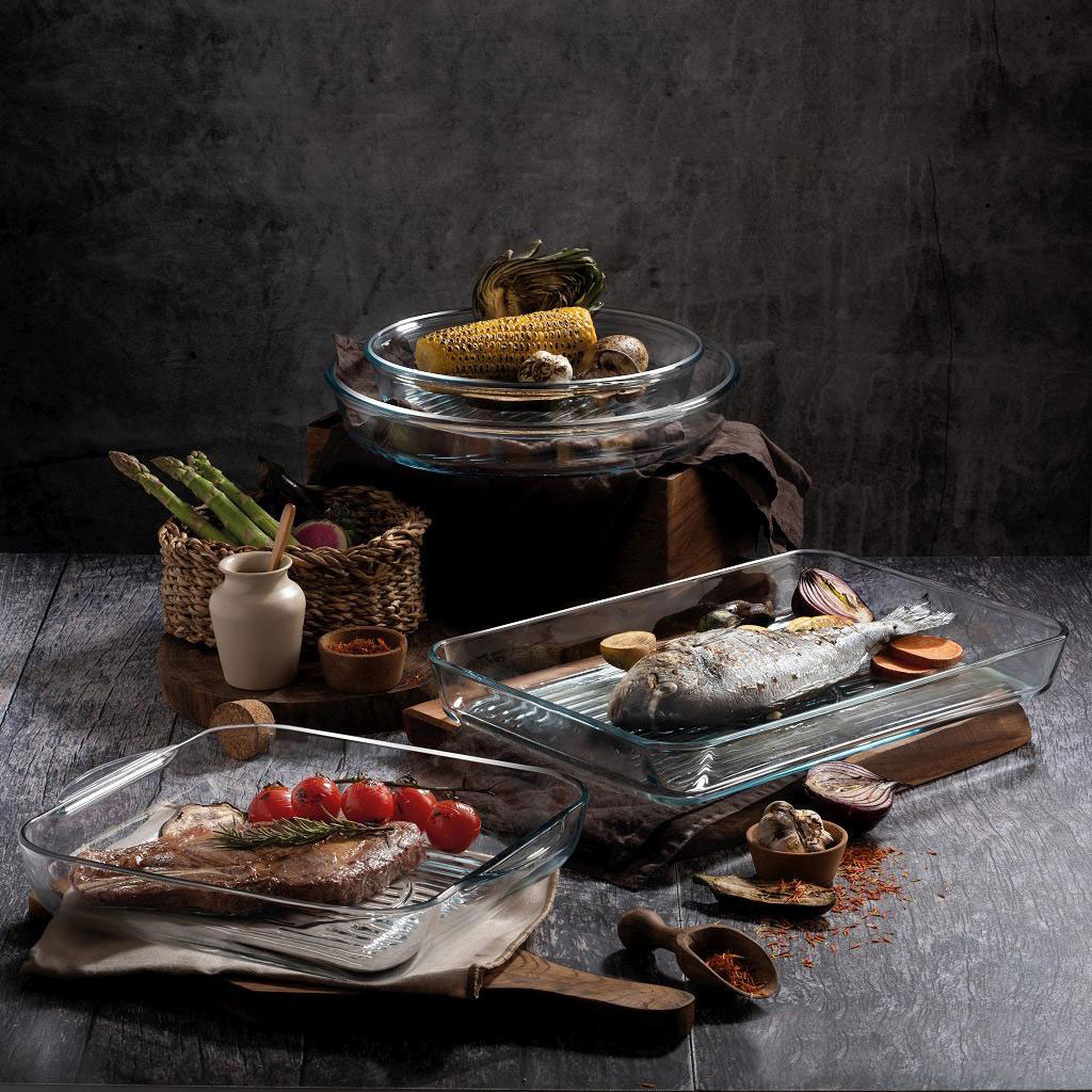 Πυρίμαχο σκεύος σε διάφανο χρώμα από την εταιρεία Pasabahce By Espiel. Είναι κατασκευασμένο από γυαλί ασφαλείας (tempered glass). Μπορεί να χρησιμοποιηθεί και ως σκεύος σερβιρίσματος. Χωρητικότητα: 4100ml.