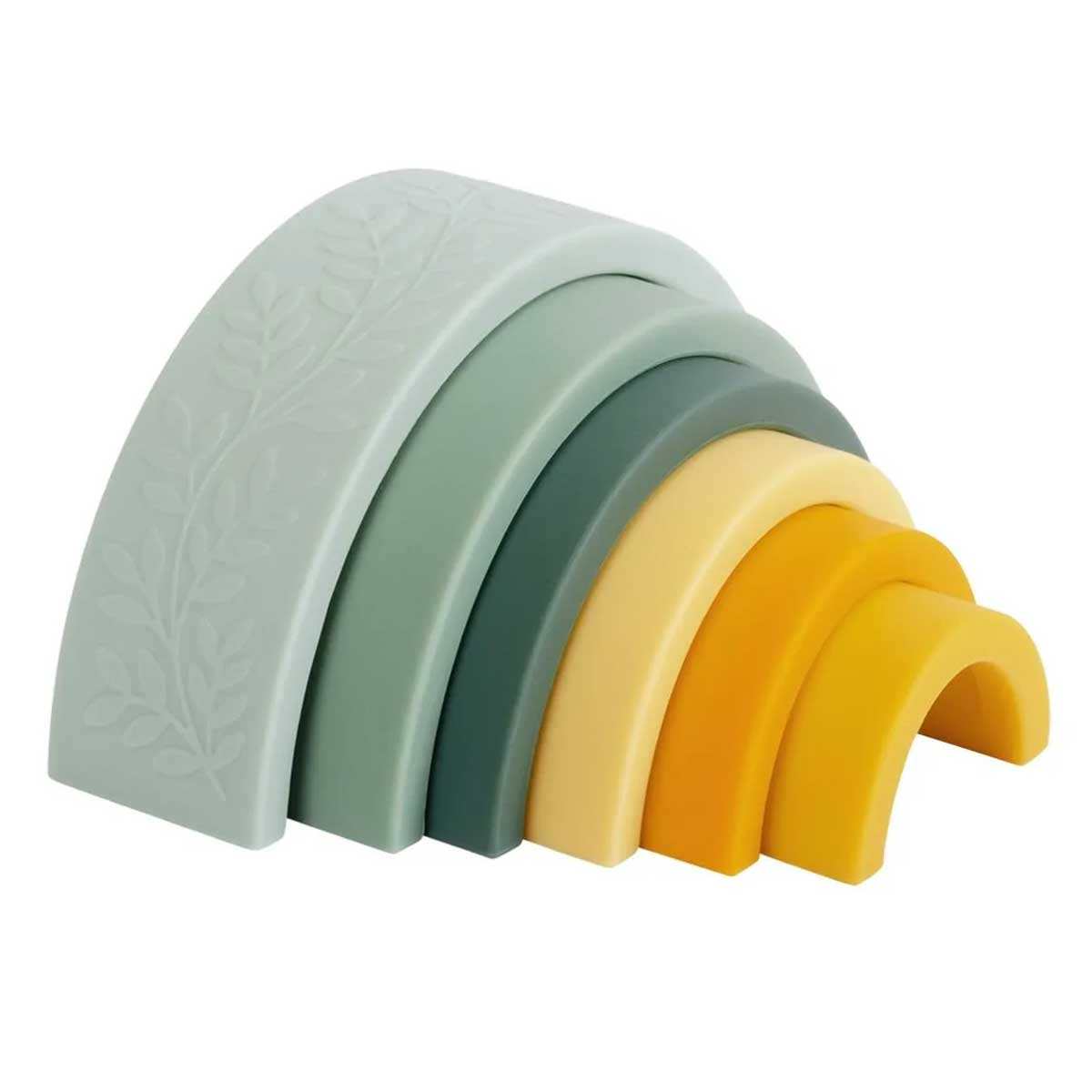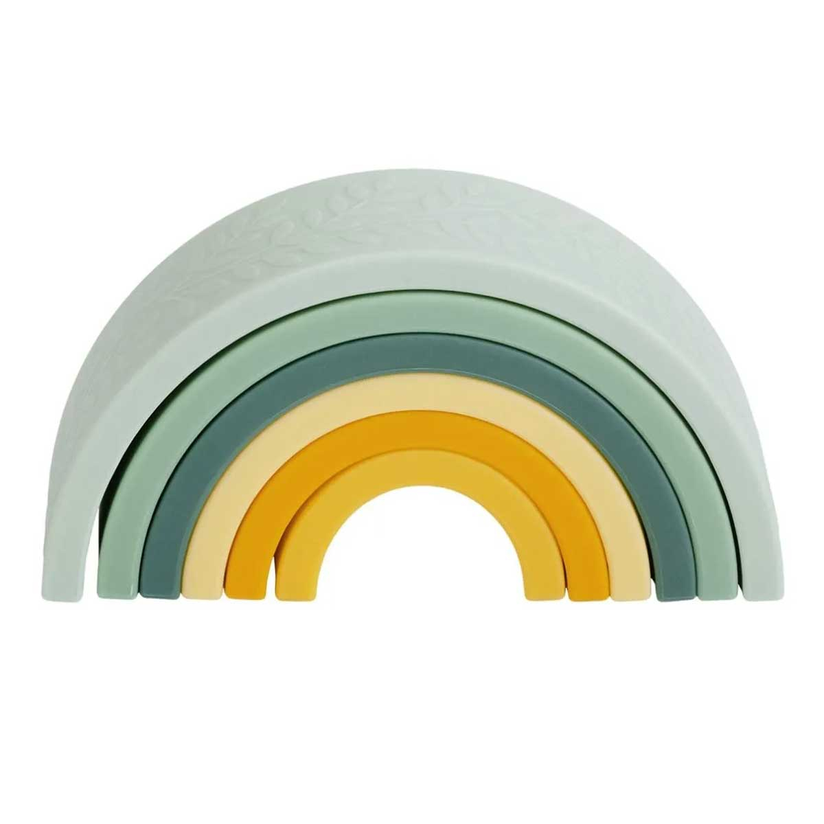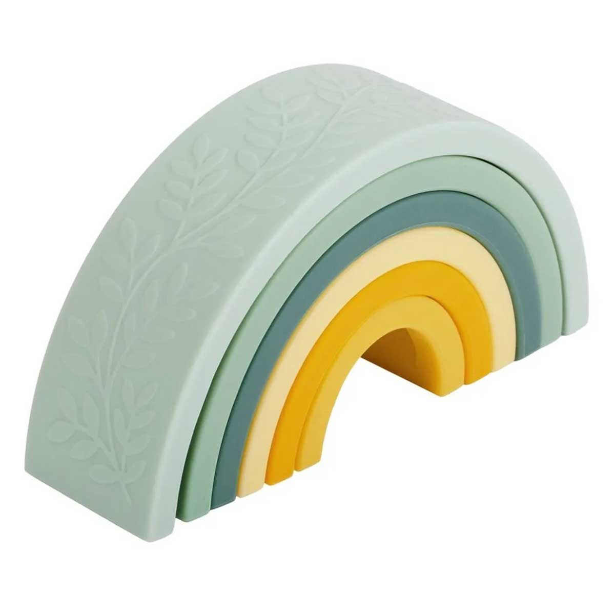 Παιχνίδι στοίβαξης σε σχήμα ουράνιου τόξου από την εταιρεία A Little Lovely Company. Είναι κατασκευασμένο από 100% σιλικόνη εγκεκριμένη για τρόφιμα, χωρίς PVC, BPA, φθαλικές ενώσεις και νιτροζαμίνες. Είναι εξαιρετικά ανθεκτικό και καθαρίζεται εύκολα. Χρησιμοποιείται ως παιχνίδι εσωτερικού και εξωτερικού χώρου ή σαν παιχνίδι μπάνιου, για μωρά από 0 μηνών και άνω. Επίσης μπορεί να λειτουργήσει ως πολύ όμορφο διακοσμητικό αντικείμενο στο παιδικό δωμάτιο. Το παιδί μπορείτε να στοιβάζει τα κομμάτια, να τα χτίζει, να τα ισορροπεί, ακόμη και να τα μασάει!