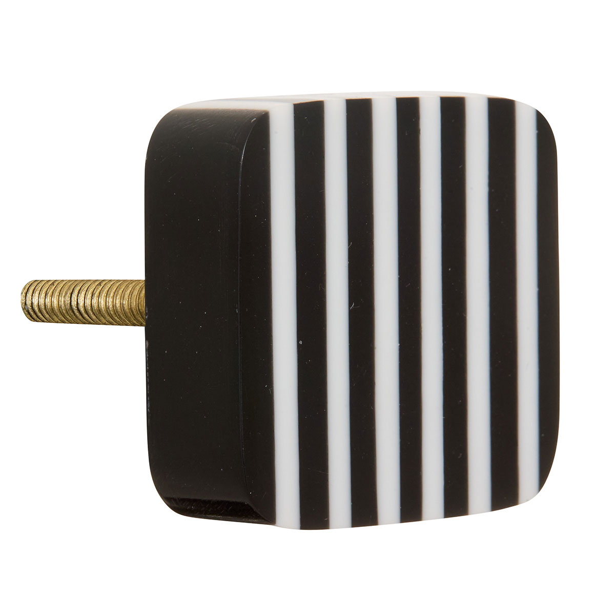 Πόμολα επίπλων σε σετ 2 τεμαχίων, με μοντέρνα αισθητική. Είναι κατασκευασμένα από polyresin υλικό σε μαύρο χρώμα με λευκές λεπτομέρειες. Οι κάθετες ρίγες δημιουργούν ένα έντονο γραφικό αποτέλεσμα, ιδανικό για χώρους με σύγχρονη ή minimal αισθητική. Η στιβαρή κατασκευή από polyresin προσφέρει αντοχή στη καθημερινή χρήση, ενώ ο γεωμετρικός τους σχεδιασμός τα καθιστά ιδανικά για συρτάρια και ντουλάπια. Ένα μικρό αλλά εντυπωσιακό διακοσμητικό στοιχείο που ανανεώνει εύκολα την εικόνα των επίπλων.