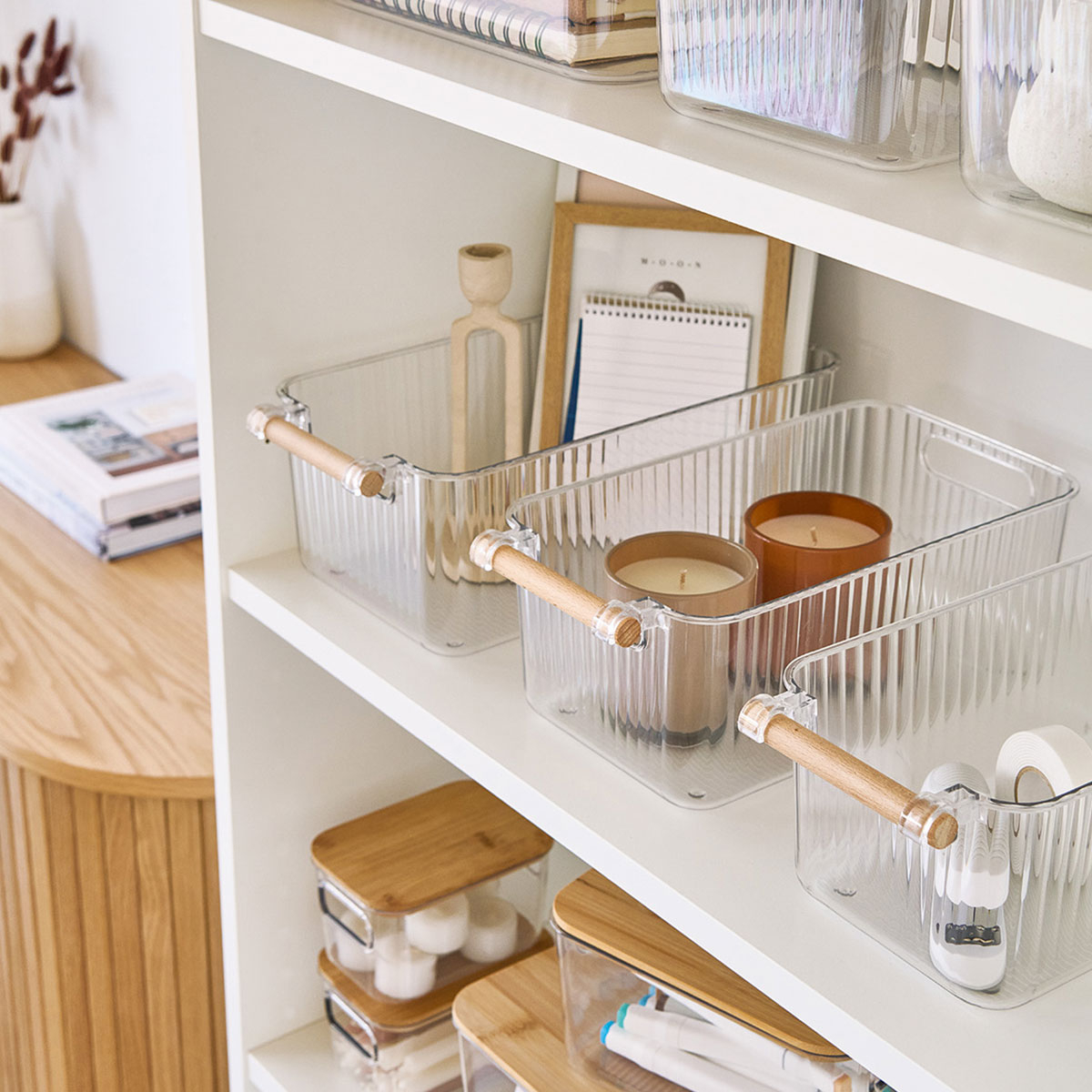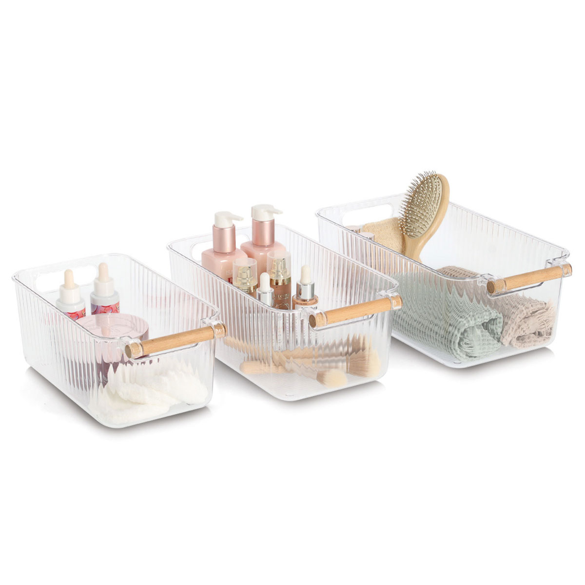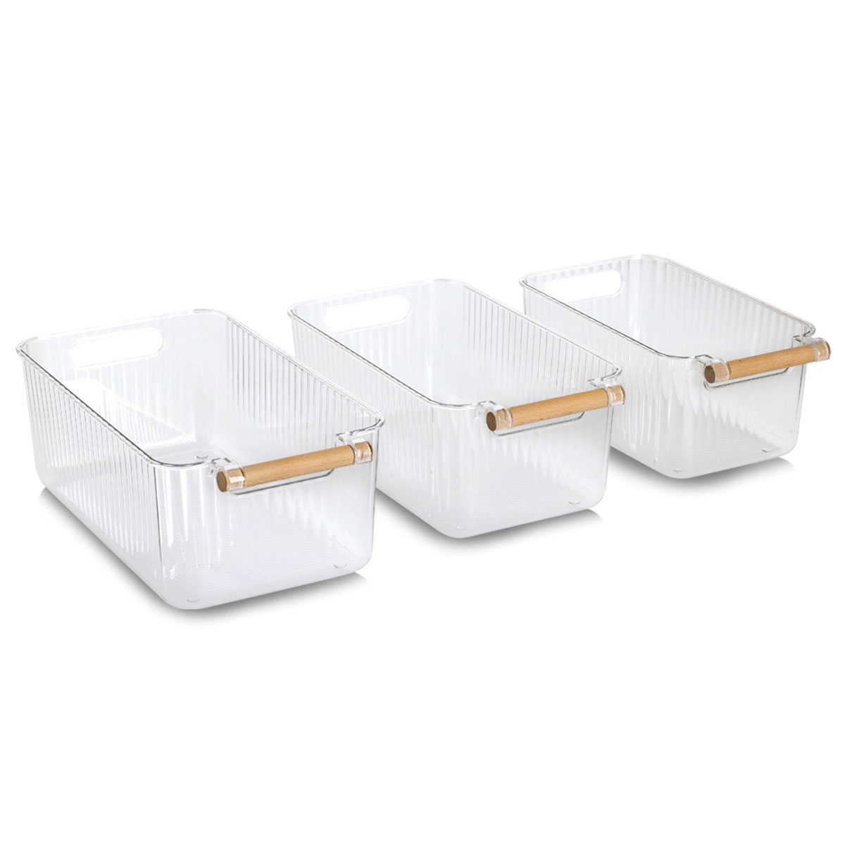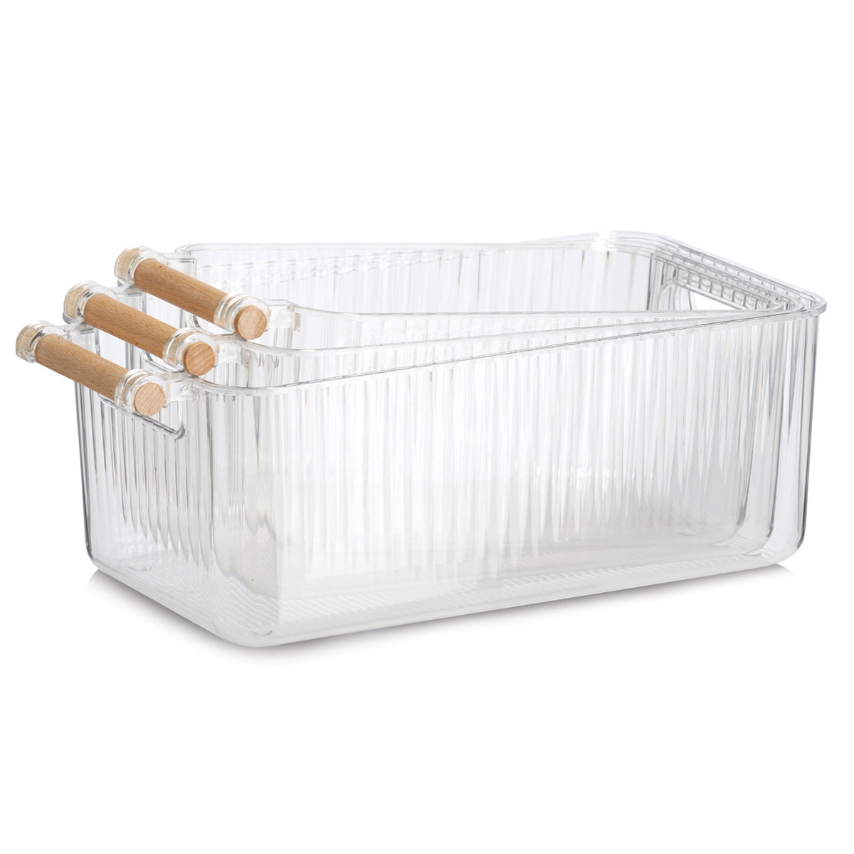 Θήκες οργάνωσης για το ψυγείο, κατασκευασμένες από πλαστικό υλικό. Είναι διάφανες ώστε να σας επιτρέπουν να βλέπετε το περιεχόμενο τους. Διαθέτουν λαβές από ξύλο bamboo για εύκολη μεταφορά. Ιδανικά κουτί που θα σας βοηθήσουν να οργανώσετε απόλυτα και να εκμεταλλευτείτε στο έπακρο το χώρο του ψυγείου.
