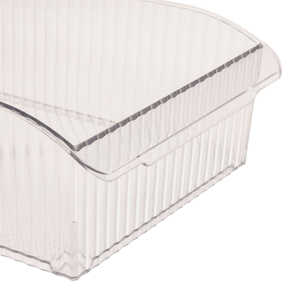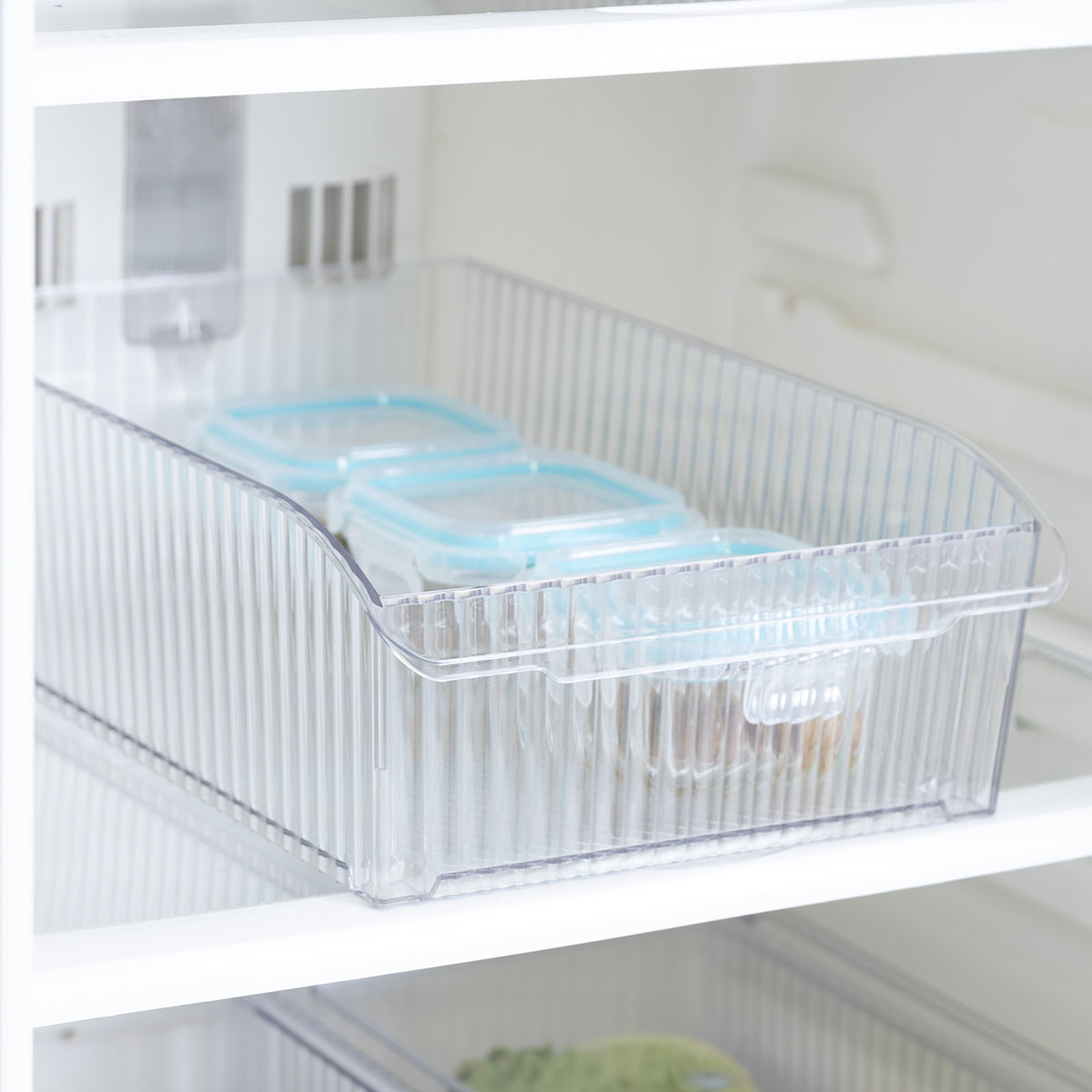Θήκη οργάνωσης για το ψυγείο κατασκευασμένη από πλαστικό υλικό. Είναι διάφανη ώστε να σας επιτρέπει να βλέπετε το περιεχόμενο της. Διαθέτει 2 μικρούς τροχούς στο πίσω μέρος του κάδου που επιτρέπουν την ολίσθησή του χωρίς κόπο και έτσι διευκολύνουν την πρόσβαση στα προϊόντα που είναι αποθηκευμένα πίσω πίσω. Ιδανικό κουτί που σας βοηθάει να οργανώσετε απόλυτα και να εκμεταλλευτείτε στο έπακρο το χώρο του ψυγείου. Συνδυάστε το με τα υπόλοιπα είδη του ίδιου σετ για ένα ολοκληρωμένο αποτέλεσμα στο χώρο σας.
