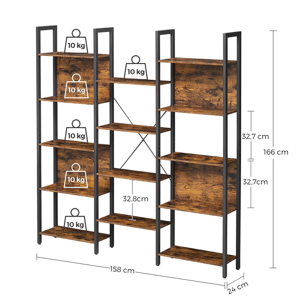 Ραφιέρα δαπέδου με 14 θέσεις και μοντέρνο σχεδιασμό από την εταιρεία Vasagle. Ο σκελετός είναι κατασκευασμένος από μαύρο μεταλλικό υλικό ενώ τα ράφια από μοριοσανίδα σε καφέ ρουστίκ χρώμα. Ιδανική για να τοποθετηθεί στη κρεβατοκάμαρα ή στο σαλόνι και να δώσει ένα μοναδικό ύφος, τακτοποιώντας παράλληλα τα μικροπράγματα σας, τα βιβλία σας ή ό,τι άλλο θέλετε. Τα πόδια έχουν ρυθμιζόμενες τάπες για να μην φθείρουν το πάτωμα και διαθέτει εξαρτήματα εγκατάστασης τοίχου για μεγαλύτερη σταθερότητα. Το κάθε ράφι έχει μέγιστο βάρος αντοχής 10kg. Καθαρίστε τα ράφια με ένα υγρό πανί και έπειτα σκουπίστε. Συνδυάστε τη με τα υπόλοιπα είδη της ίδιας σειράς για ένα ολοκληρωμένο αποτέλεσμα στο χώρο σας. *Το προϊόν έρχεται αμοντάριστο.*