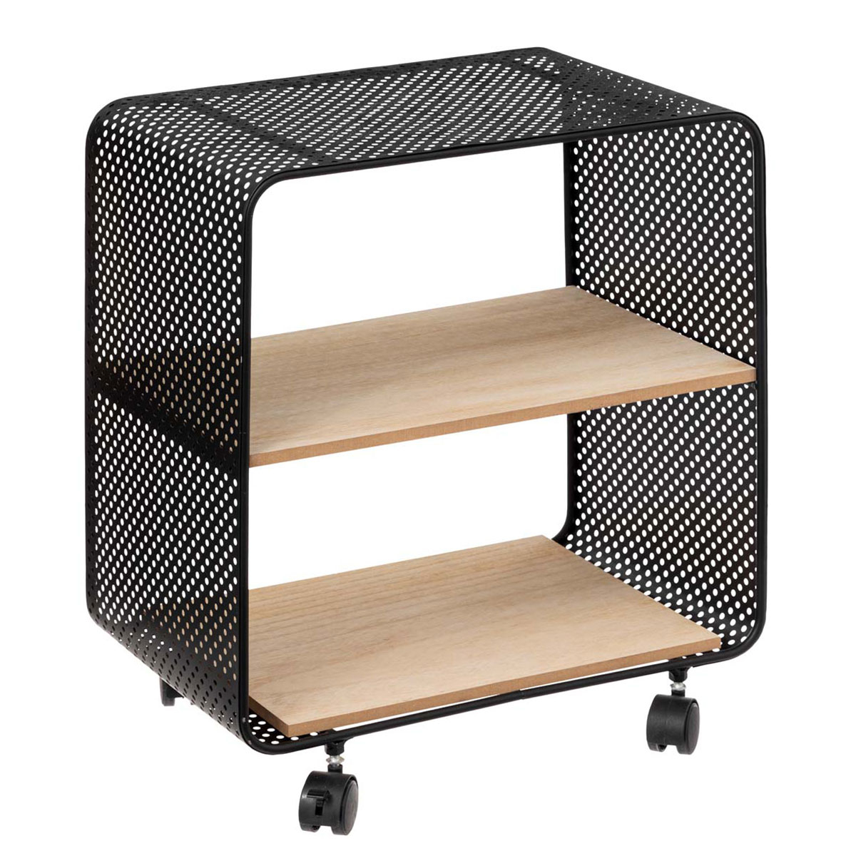 Ραφιέρα δαπέδου με μοντέρνο σχεδιασμό και μαύρο χρώμα. Διαθέτει ροδάκια για εύκολη μεταφορά. Ιδανική για να οργανωσετε τα πράγματά σας στο γραφείο, το υπνιδωμάτιο ή όπου αλλού σας είναι απαραίτητη. Το προϊόν έρχεται αμοντάριστο και συναρμολογείται βάσει οδηγιών.