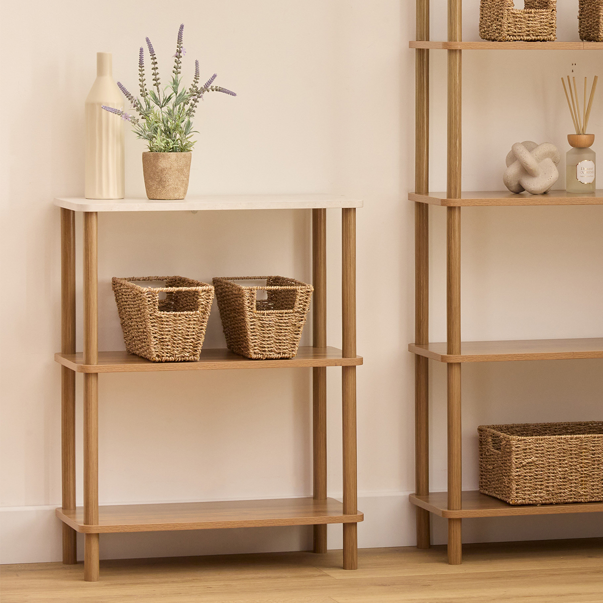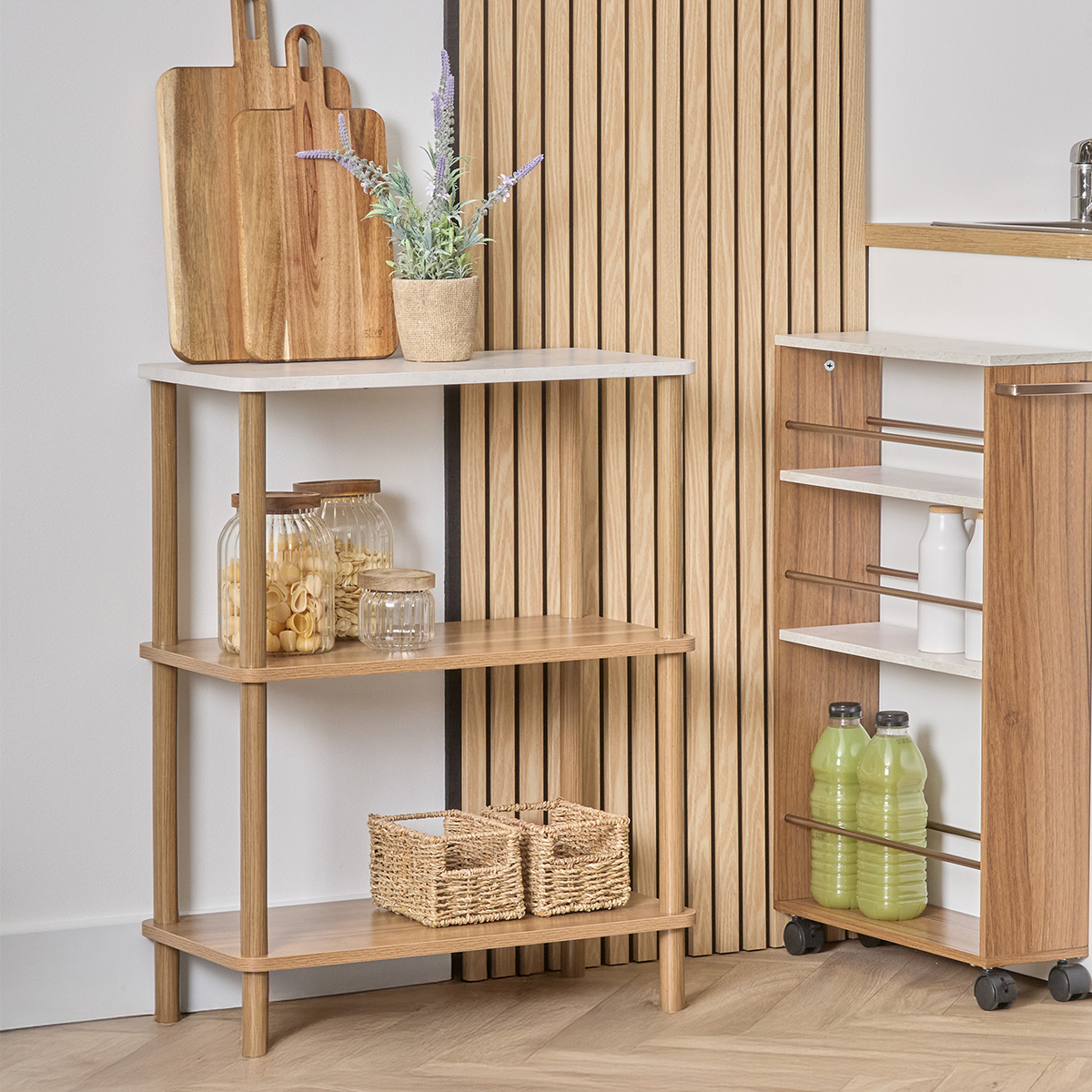 Επιδαπέδια ραφιέρα με 3 ράφια κατασκευασμένη από ξύλο πεύκου και MDF. Ιδανική για να τοποθετηθεί στη κρεβατοκάμαρα ή στο σαλόνι και να δώσει ένα μοντέρνο ύφος, τακτοποιώντας παράλληλα τα βιβλία και τα διακοσμητικά σας. Μπορεί να χρησιμοποιηθεί και ως βοηθητικό έπιπλο κουζίνας για την οργάνωση τροφίμων ή άλλων χρηστικών ειδών. *Το προϊόν έρχεται αμοντάριστο και συναρμολογείται βάσει οδηγιών.*