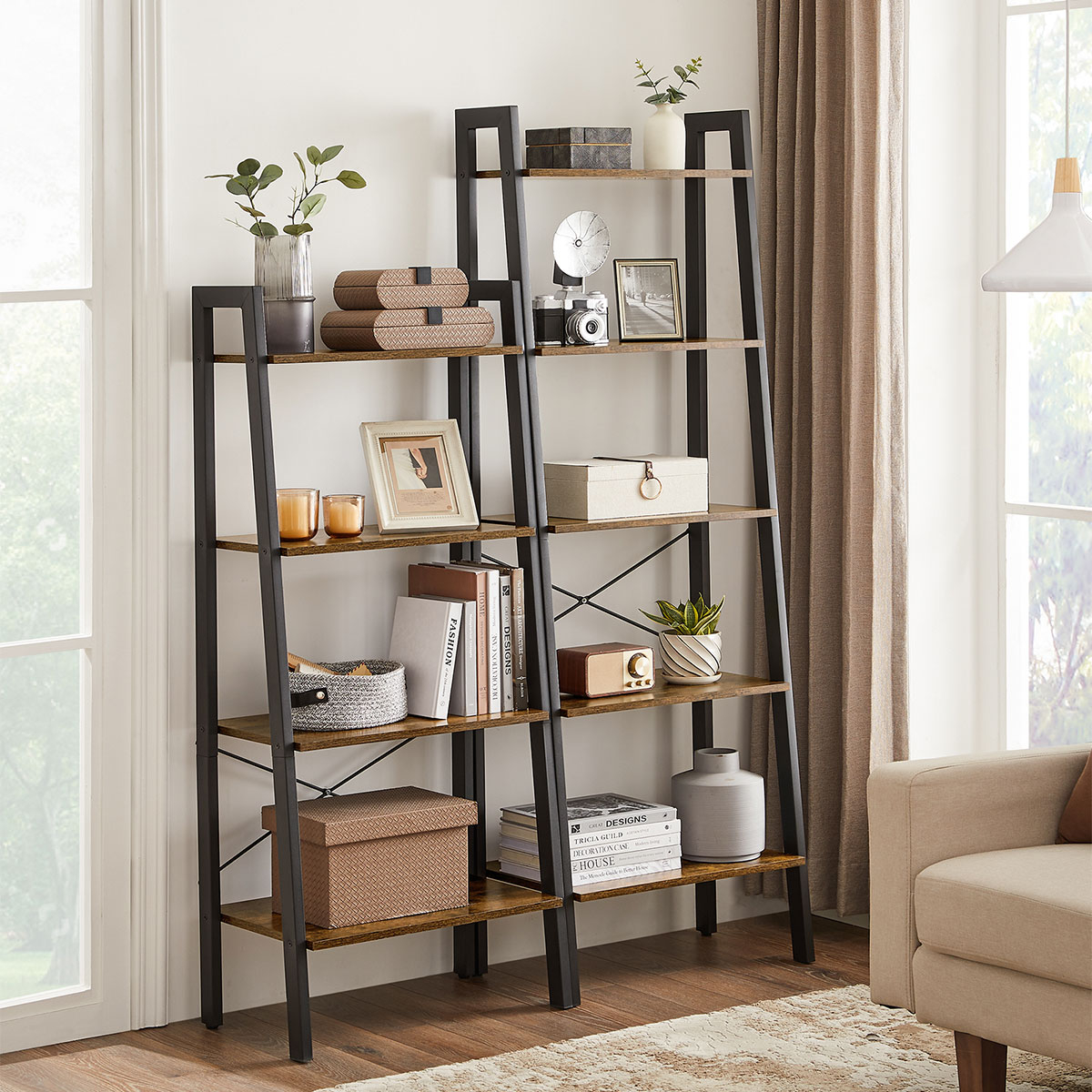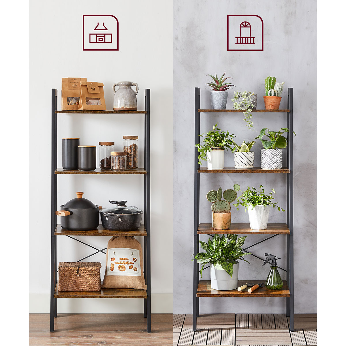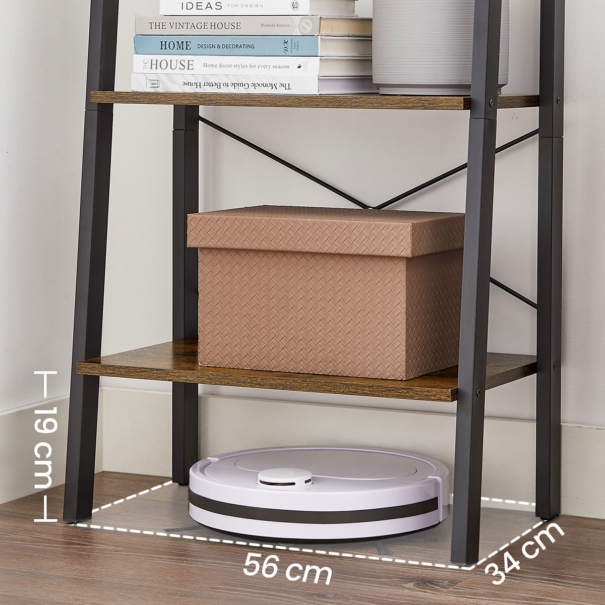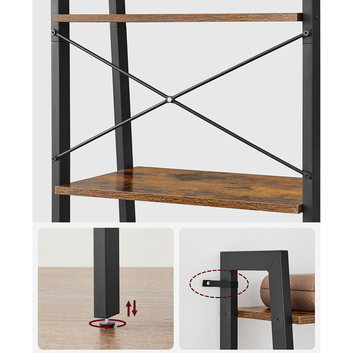 Επιδαπέδια ραφιέρα από την εταιρεία Vasagle σε καφέ ρουστίκ χρώμα και μαύρο υλικό. Ιδανική για να τοποθετηθεί σε οποιοδήποτε μέρος του σπιτιού και να δώσει μοντέρνο ύφος, τακτοποιώντας παράλληλα τα μικροπράγματα σας, τα βιβλία σας ή ό,τι άλλο θέλετε. Το προϊόν έρχεται αμοντάριστο και συναρμολογείται βάσει οδηγιών.
