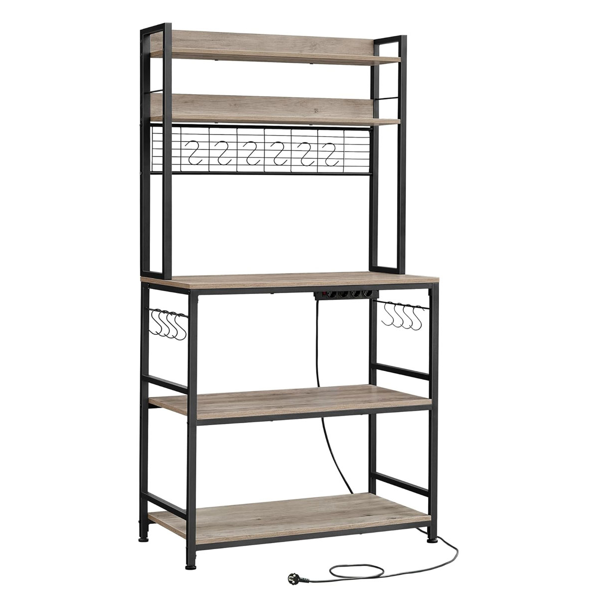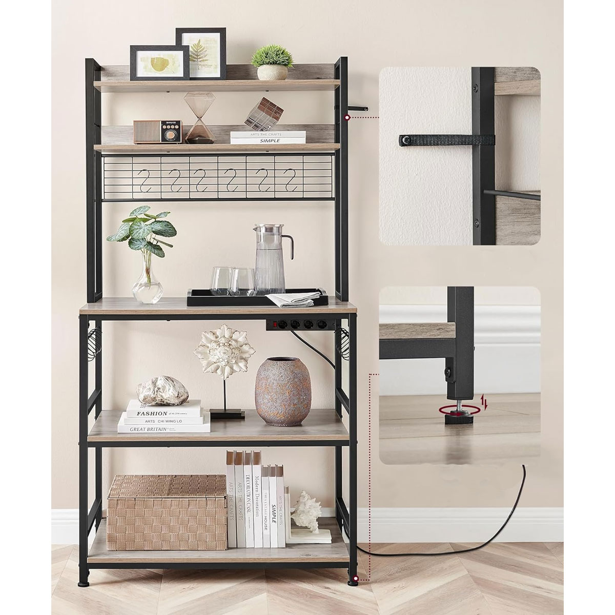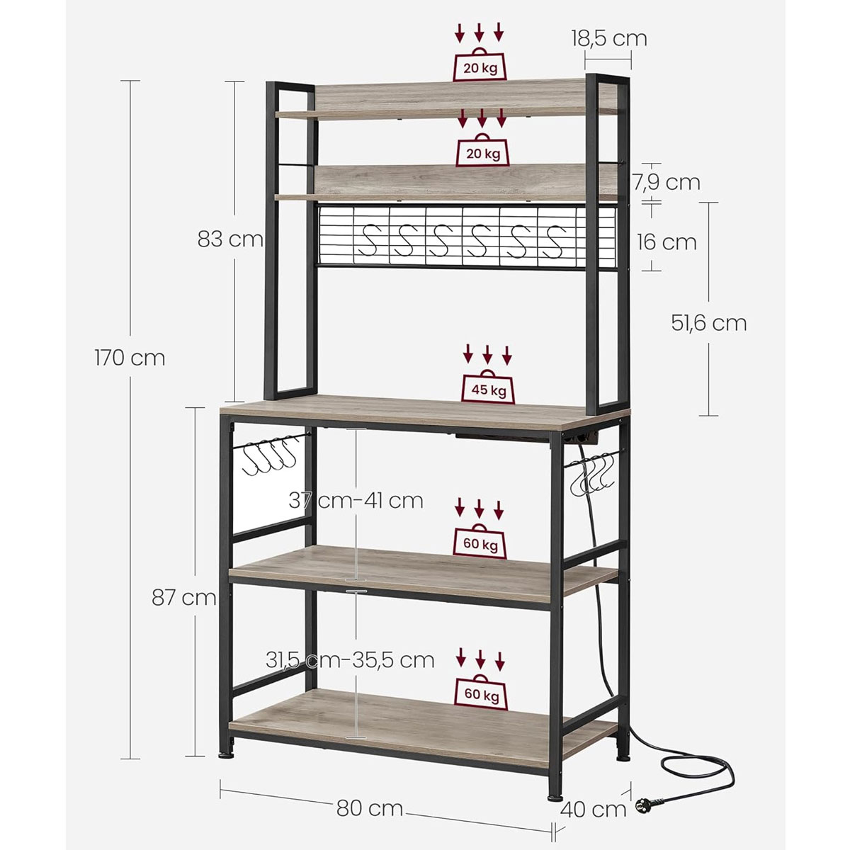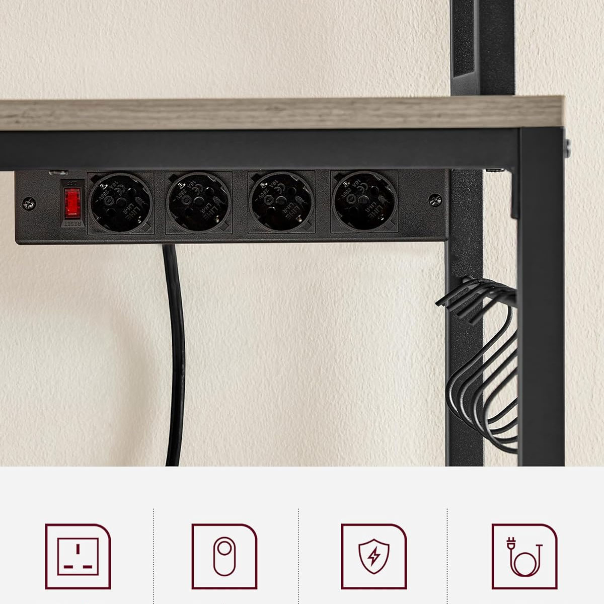Επιδαπέδια ραφιέρα με παροχή ρεύματος από την εταιρεία Vasagle σε γρκι χρώμα και μαύρο σκελετό. Ιδανική για να την τοποθετήσετε σε οποιοδήποτε μέρος του σπιτιού όπως στην κουζίνα ή στο σαλόνι για να δώσει μοντέρνο ύφος. Το προϊόν έρχεται αμοντάριστο και συναρμολογείται βάσει οδηγιών.