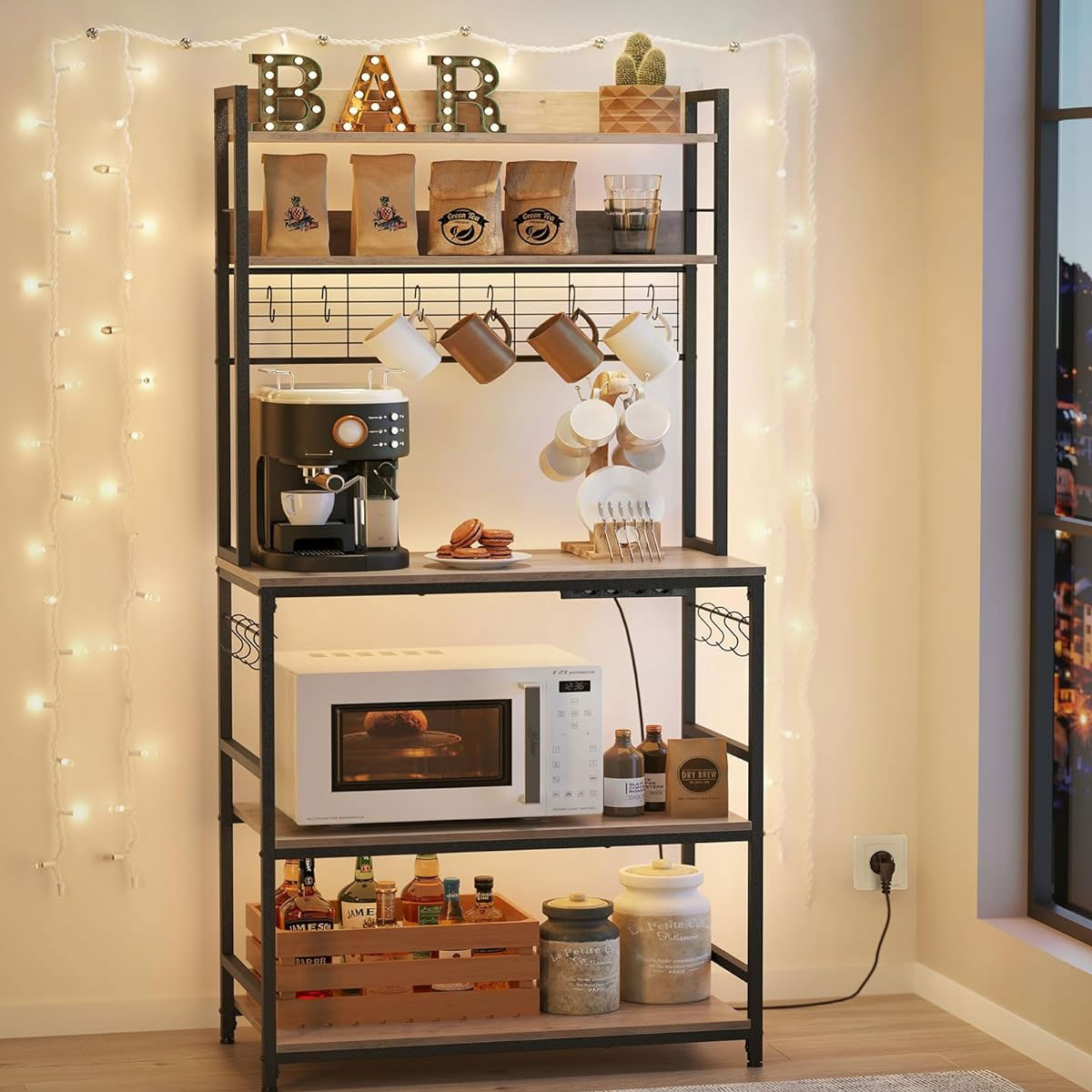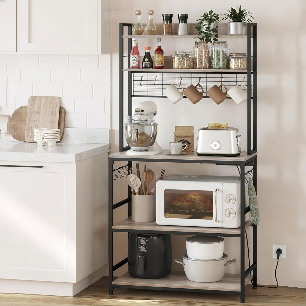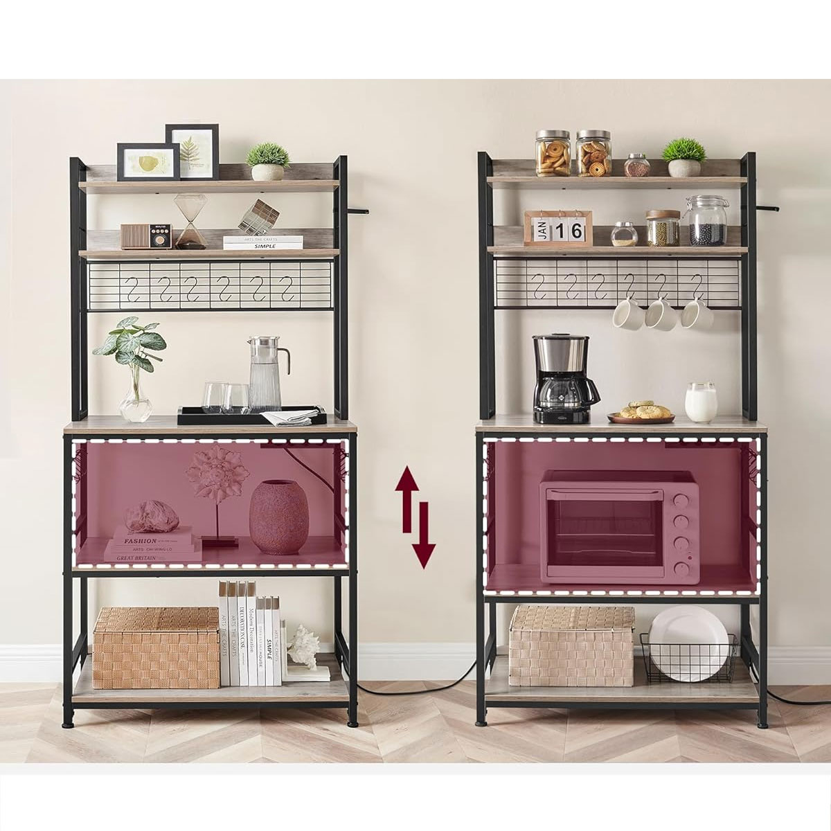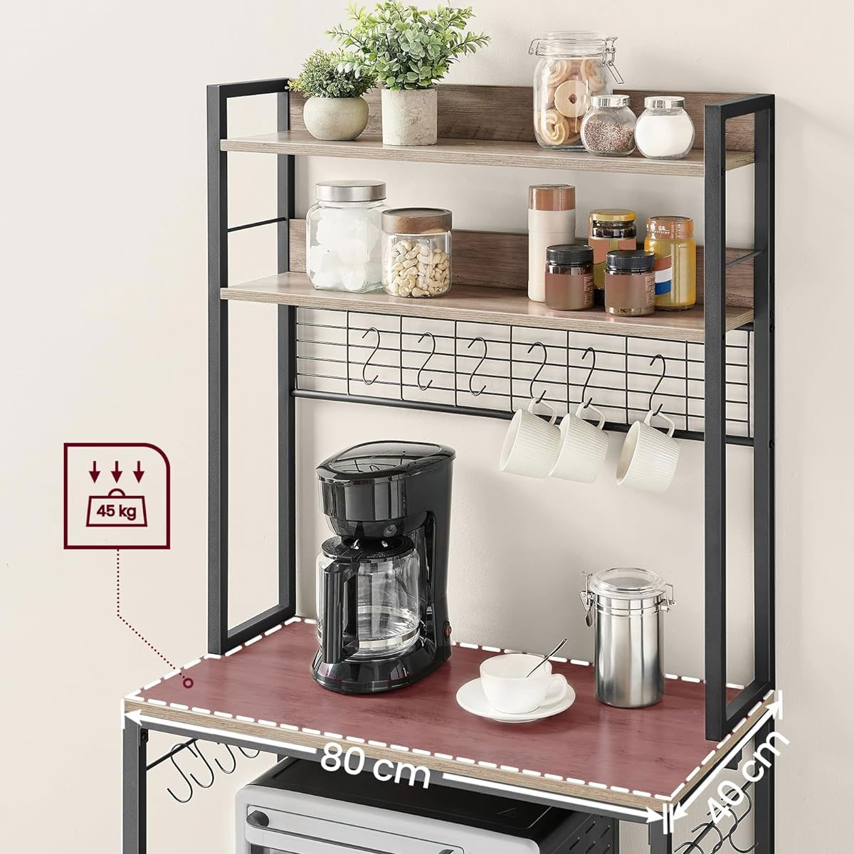 Επιδαπέδια ραφιέρα με παροχή ρεύματος από την εταιρεία Vasagle σε γρκι χρώμα και μαύρο σκελετό. Ιδανική για να την τοποθετήσετε σε οποιοδήποτε μέρος του σπιτιού όπως στην κουζίνα ή στο σαλόνι για να δώσει μοντέρνο ύφος. Το προϊόν έρχεται αμοντάριστο και συναρμολογείται βάσει οδηγιών.