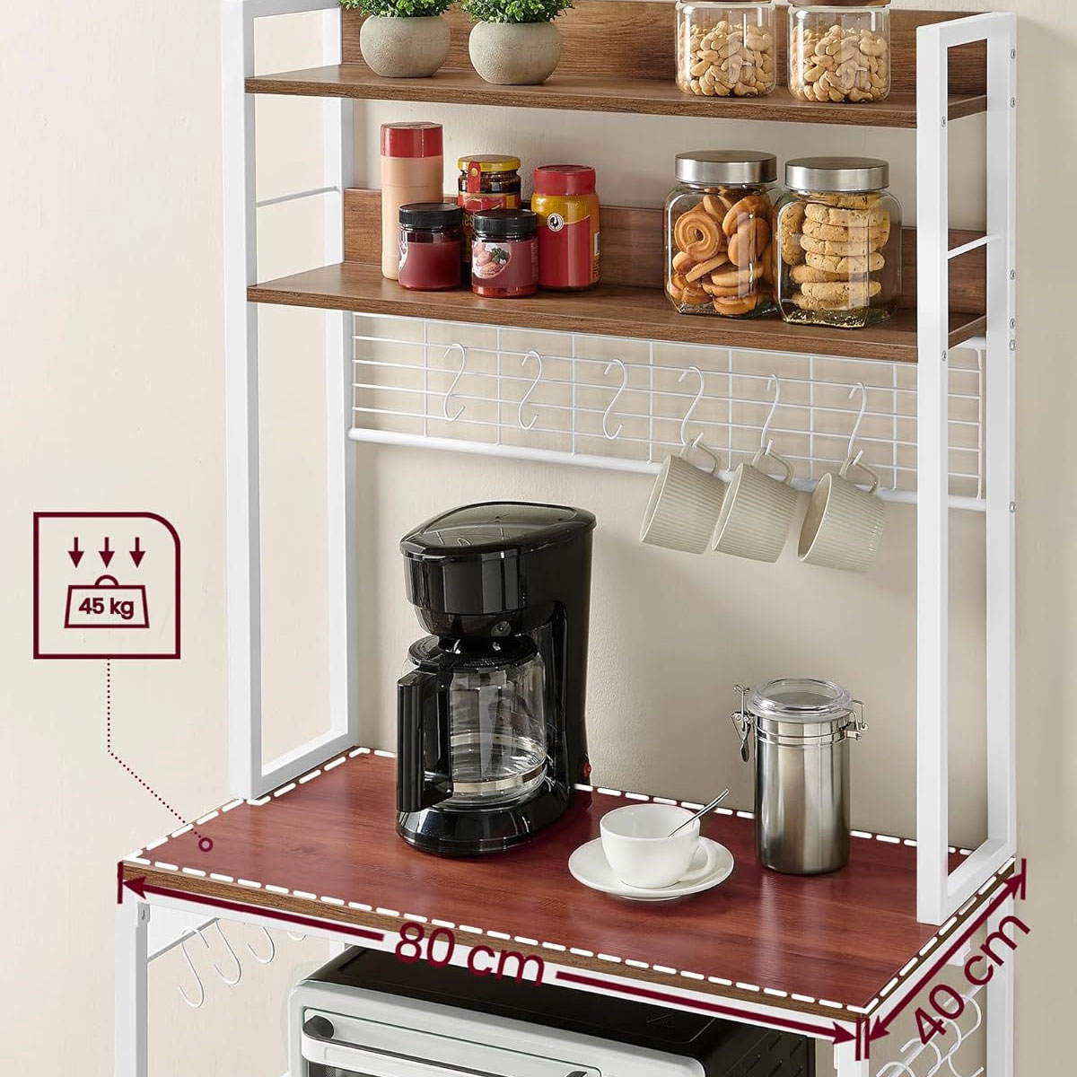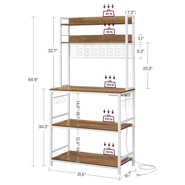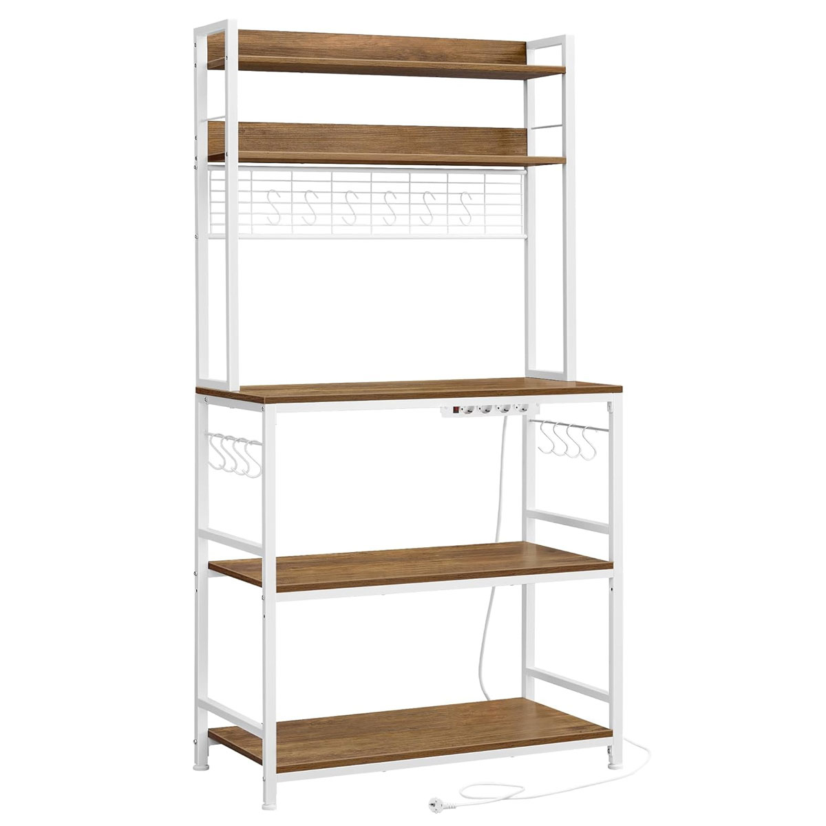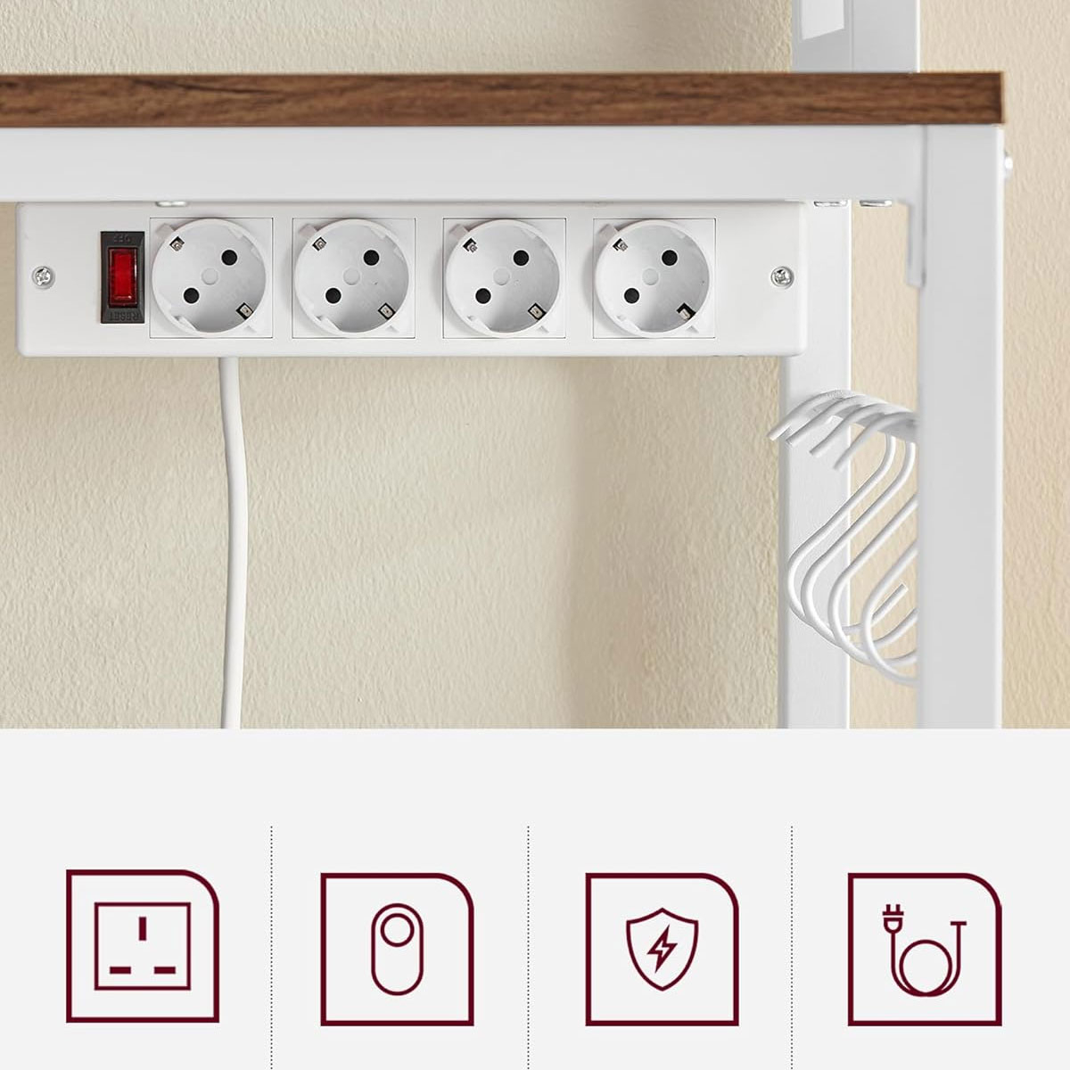 Επιδαπέδια ραφιέρα με παροχή ρεύματος από την εταιρεία Vasagle σε καφέ ρουστίκ χρώμα και λευκό σκελετό. Ιδανική για να την τοποθετήσετε σε οποιοδήποτε μέρος του σπιτιού όπως στην κουζίνα ή στο σαλόνι για να δώσει μοντέρνο ύφος. Το προϊόν έρχεται αμοντάριστο και συναρμολογείται βάσει οδηγιών.