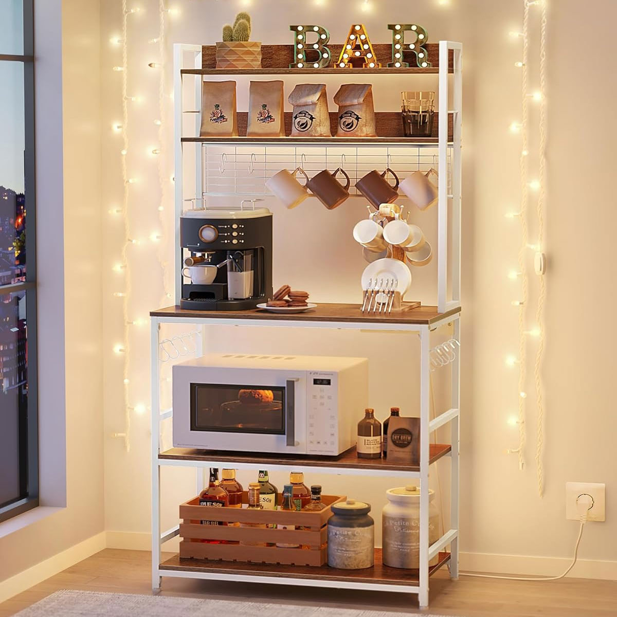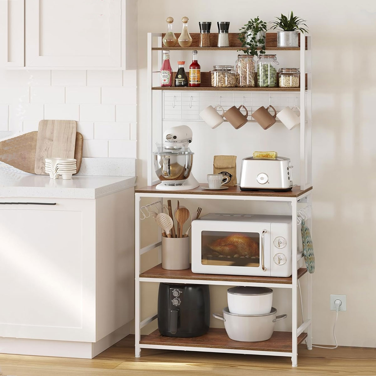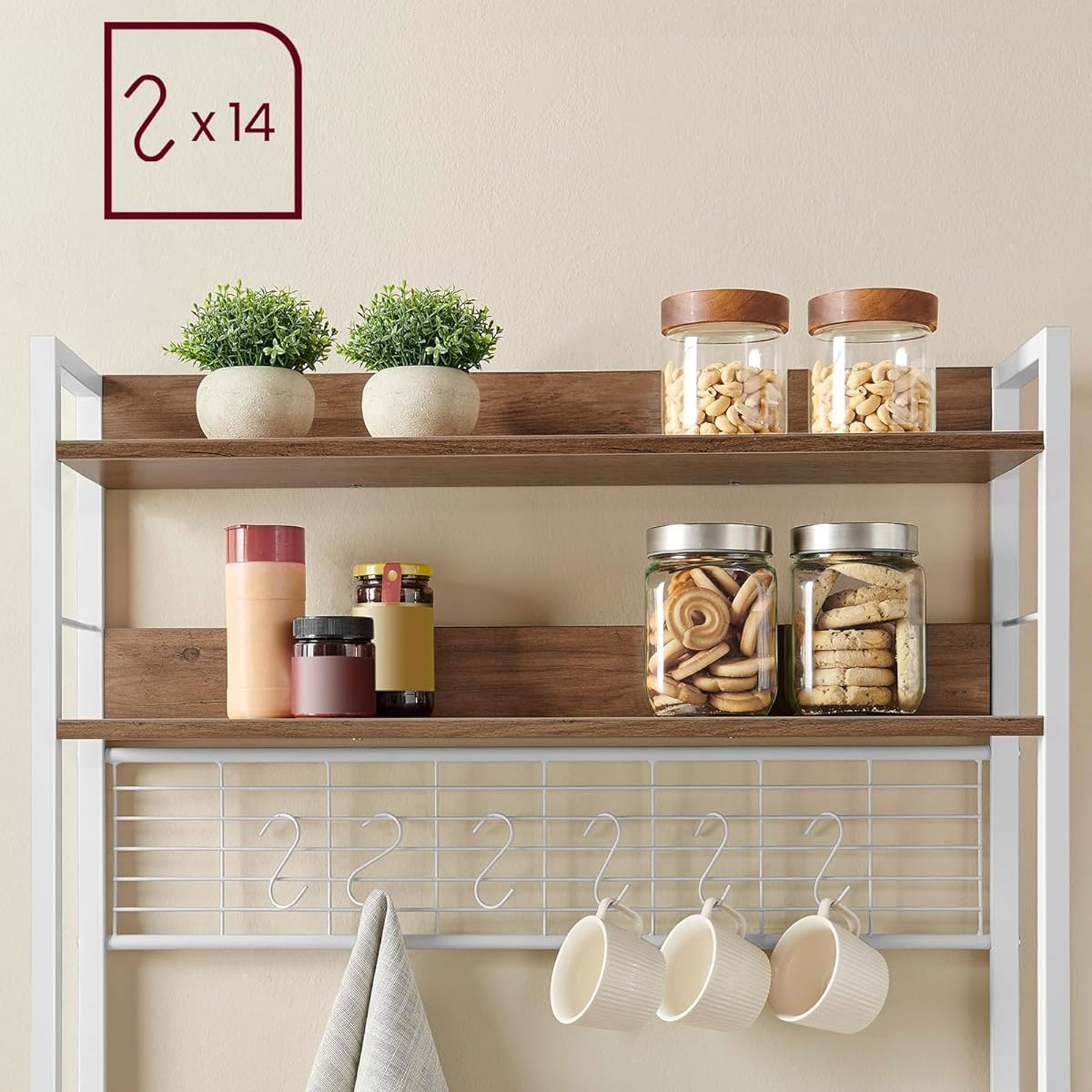 Επιδαπέδια ραφιέρα με παροχή ρεύματος από την εταιρεία Vasagle σε καφέ ρουστίκ χρώμα και λευκό σκελετό. Ιδανική για να την τοποθετήσετε σε οποιοδήποτε μέρος του σπιτιού όπως στην κουζίνα ή στο σαλόνι για να δώσει μοντέρνο ύφος. Το προϊόν έρχεται αμοντάριστο και συναρμολογείται βάσει οδηγιών.