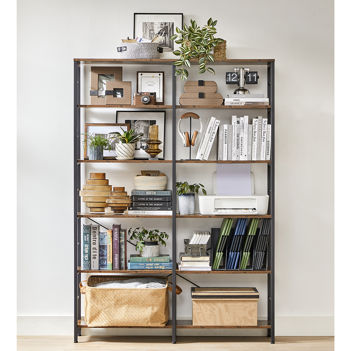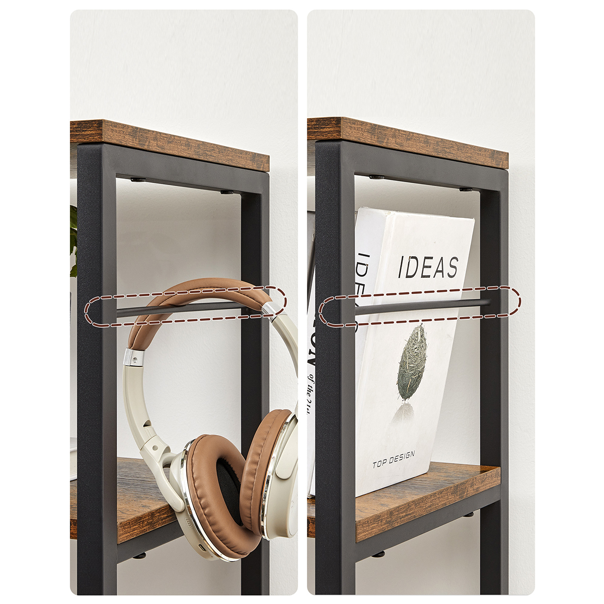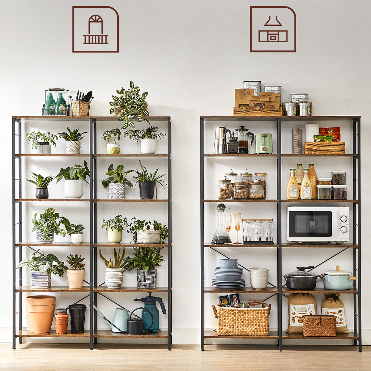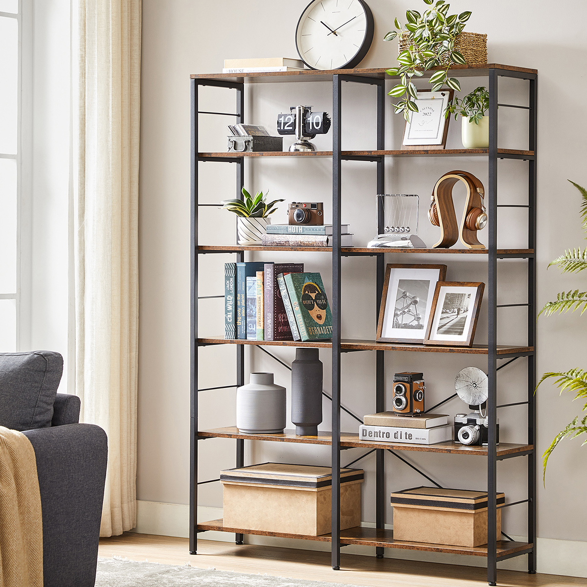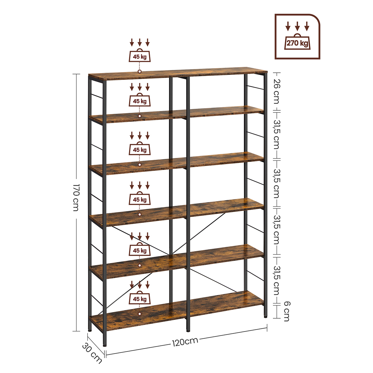 Ραφιέρα δαπέδου με 6 θέσεις και μοντέρνο σχεδιασμό από την εταιρεία Vasagle. Ο σκελετός είναι κατασκευασμένος από μαύρο μεταλλικό υλικό ενώ τα ράφια από μοριοσανίδα σε καφέ ρουστίκ χρώμα. Ιδανική για να τοποθετηθεί στη κρεβατοκάμαρα ή στο σαλόνι και να δώσει ένα μοναδικό ύφος, τακτοποιώντας παράλληλα τα μικροπράγματα σας, τα βιβλία σας ή ό,τι άλλο θέλετε. Το κάθε ράφι έχει μέγιστο βάρος αντοχής 45kg. Καθαρίστε τα ράφια με ένα υγρό πανί και έπειτα σκουπίστε. Συνδυάστε τη με τα υπόλοιπα είδη της ίδιας σειράς για ένα ολοκληρωμένο αποτέλεσμα στο χώρο σας. *Το προϊόν έρχεται αμοντάριστο.*