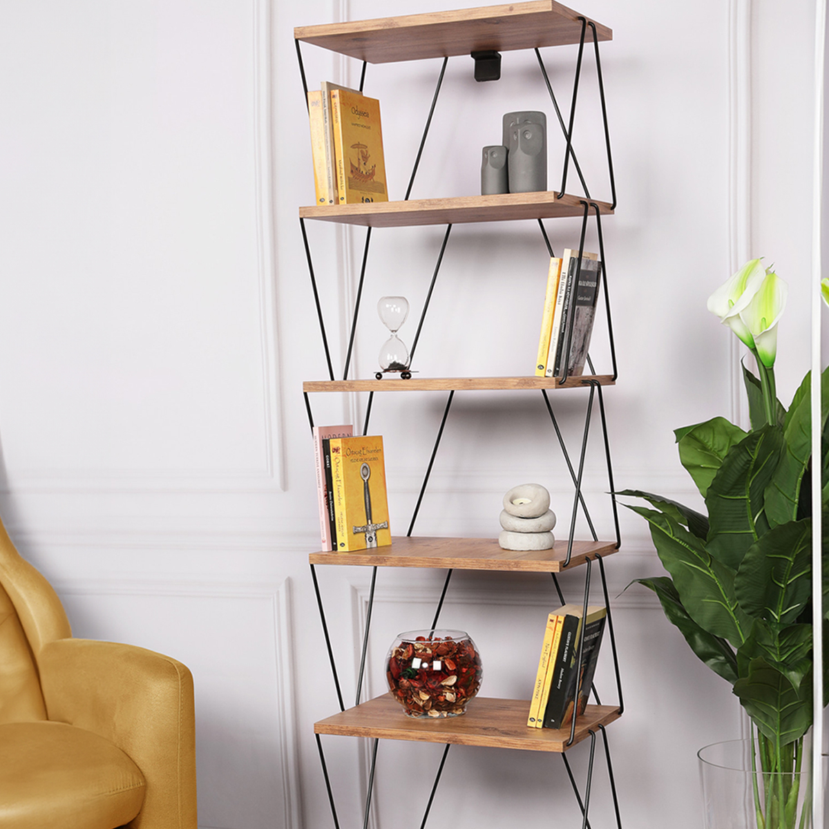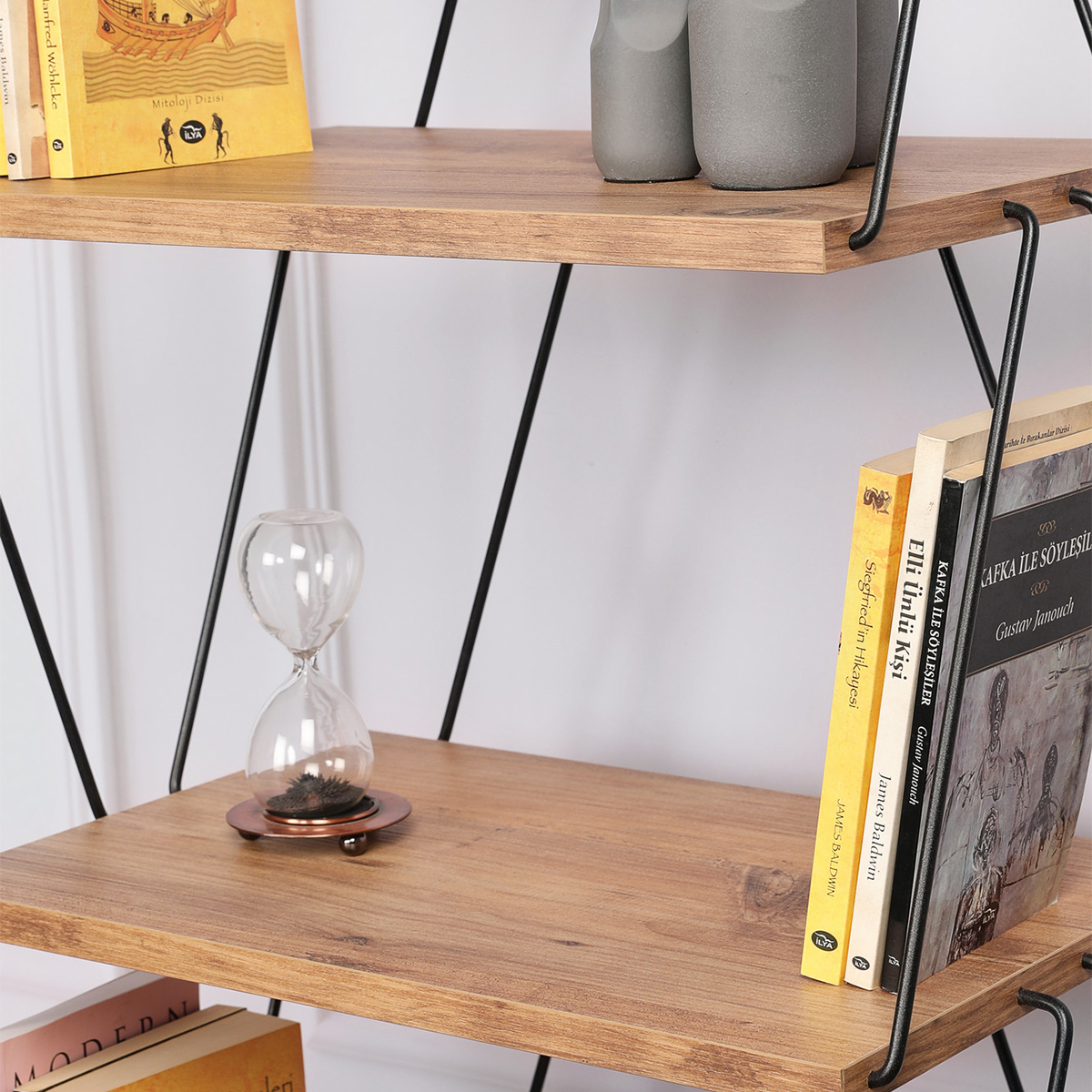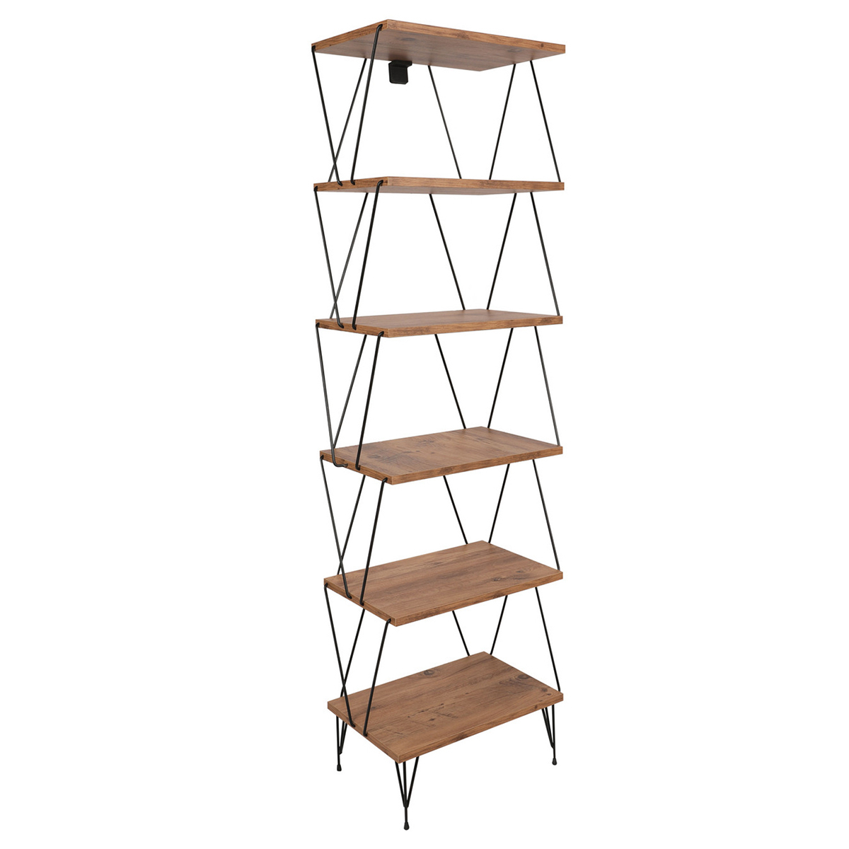 Ραφιέρα δαπέδου για να τοποθετήσετε τα βιβλία ή τα διακοσμητικά σας αντικείμενα. Έχει μοντέρνο σχεδιασμό, με ράφια σε φυσικό χρώμα ξύλου και μαύρο σκελετό. Σταθερή και ευρύχωρη, θα σας βοηθήσει να τακτοποιήσετε και να οργανώσετε τον χώρο σας. Ιδανική για το σαλόνι, το γραφείο ή και την κρεβατοκάμαρα. Το προϊόν έρχεται αμοντάριστο και συναρμολογείται βάσει οδηγιών.