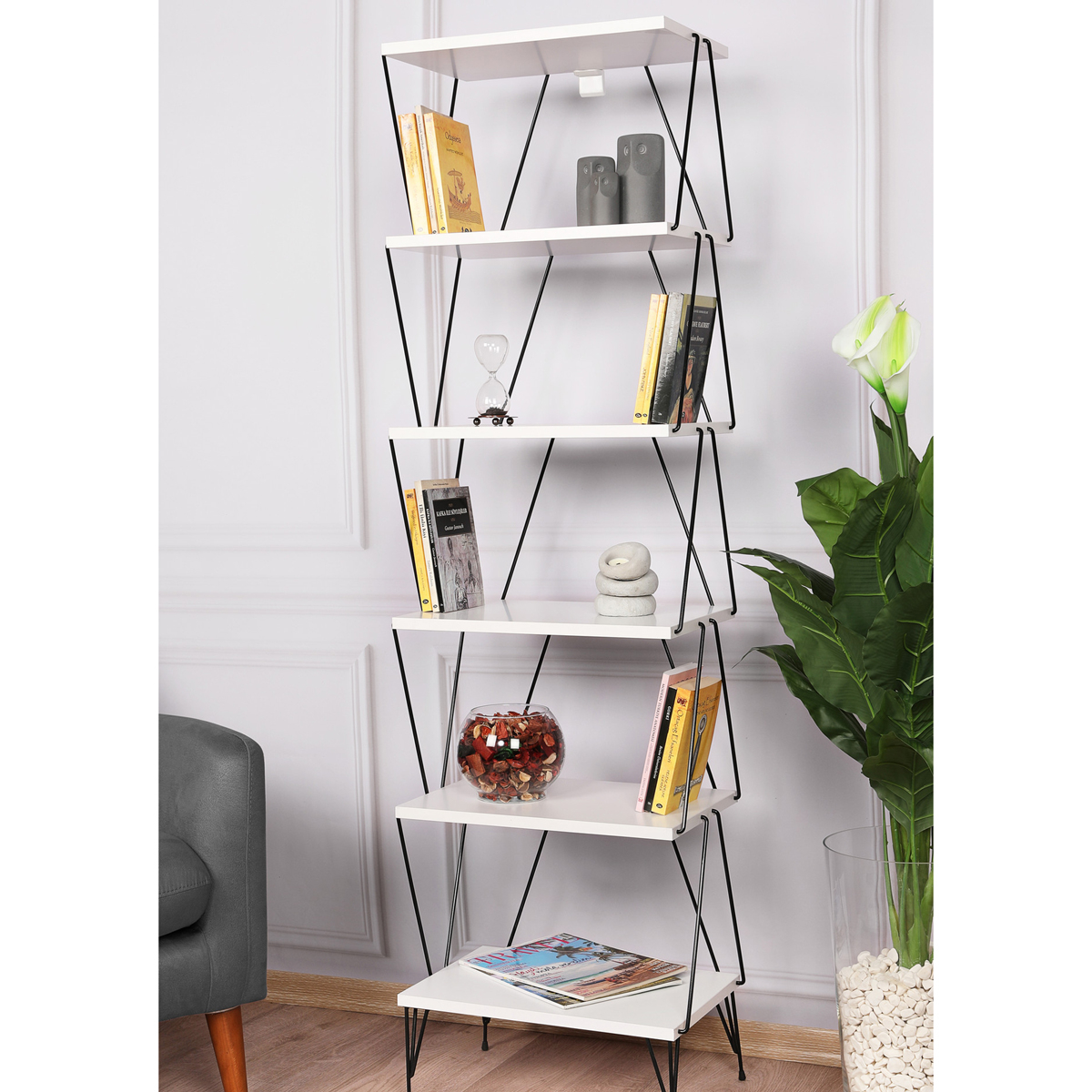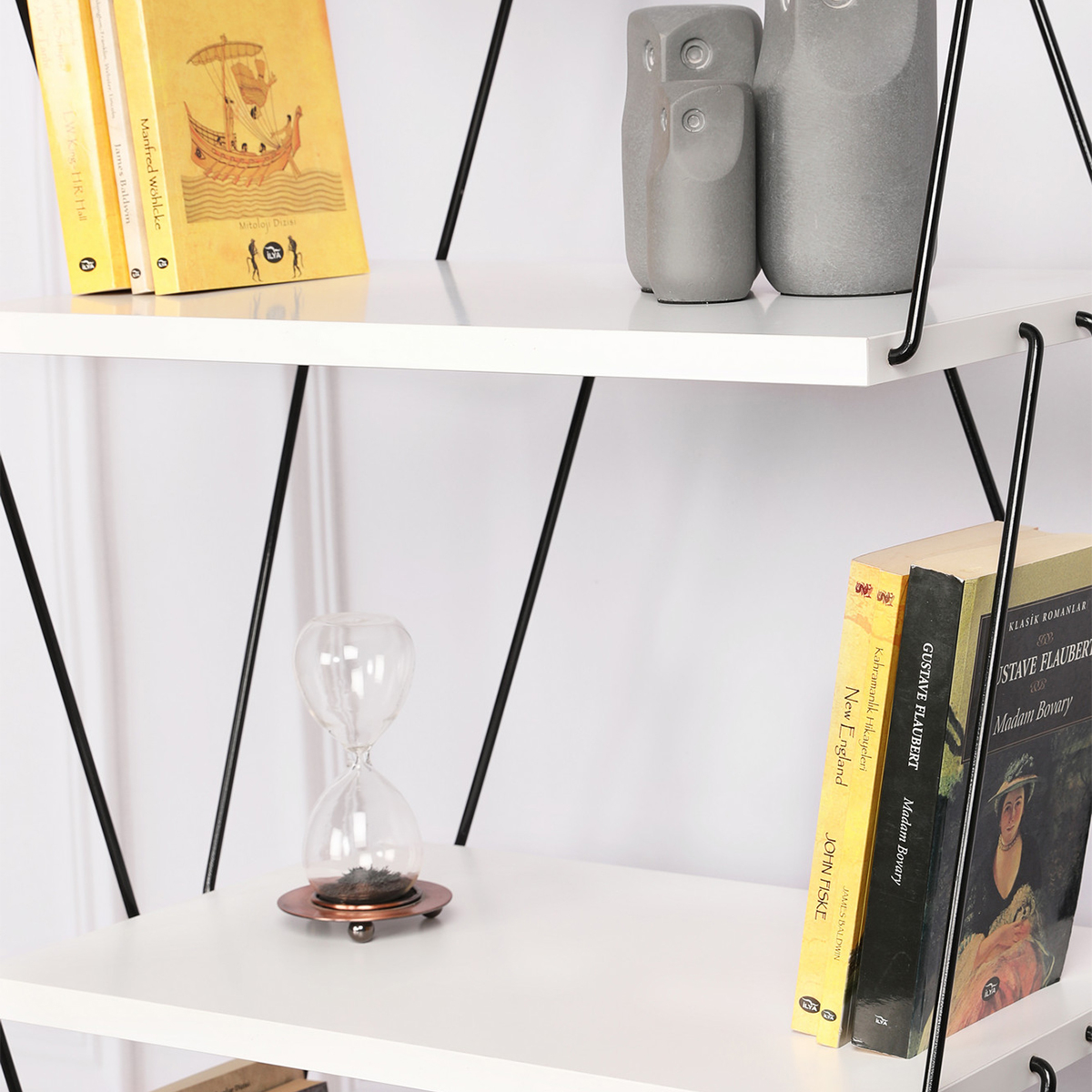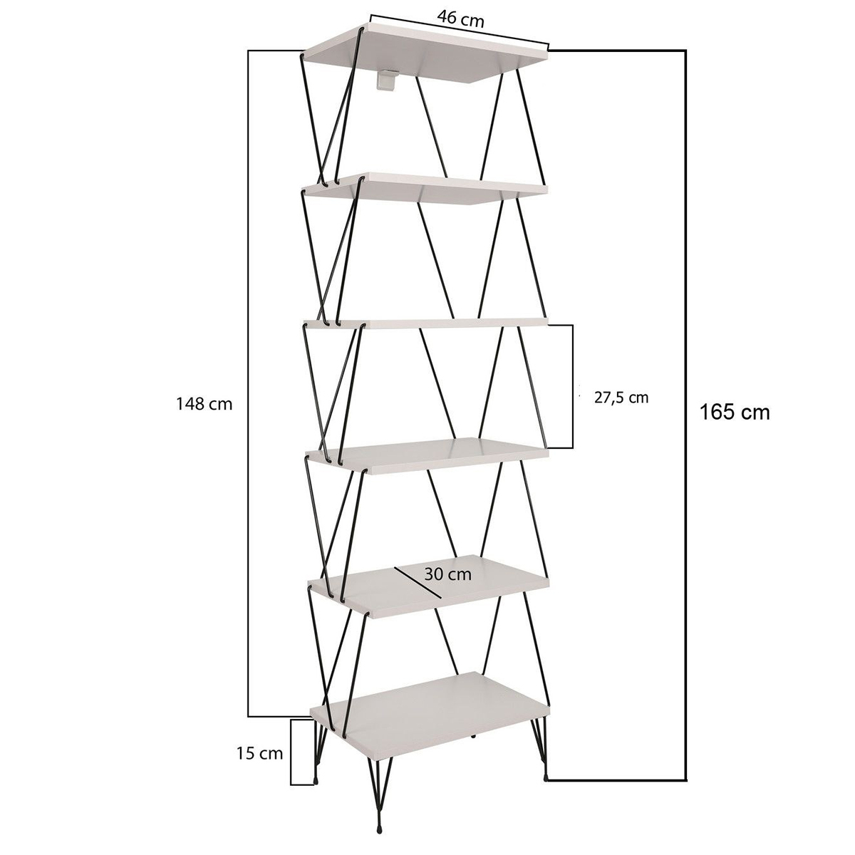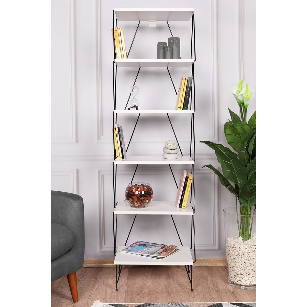 Ραφιέρα δαπέδου για να τοποθετήσετε τα βιβλία ή τα διακοσμητικά σας αντικείμενα. Έχει μοντέρνο σχεδιασμό, με ράφια σε λευκό χρώμα και μαύρο σκελετό. Σταθερή και ευρύχωρη, θα σας βοηθήσει να τακτοποιήσετε και να οργανώσετε τον χώρο σας. Ιδανική για το σαλόνι, το γραφείο ή και την κρεβατοκάμαρα. Το προϊόν έρχεται αμοντάριστο και συναρμολογείται βάσει οδηγιών.