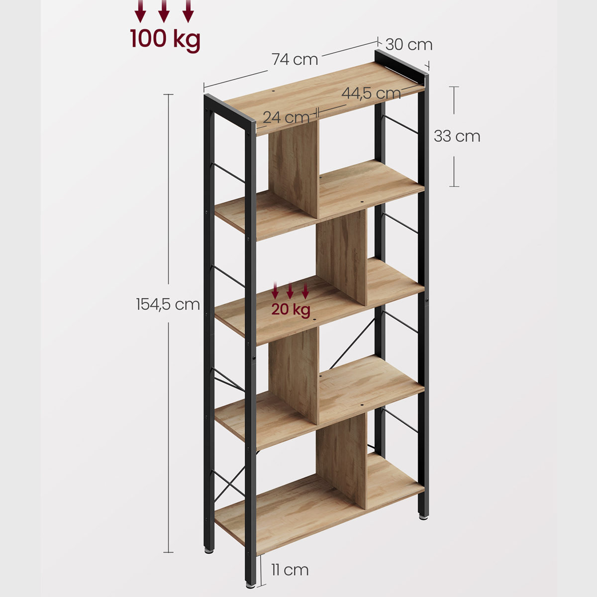- Μέγιστο βάρος αντοχής ανά ράφι: 20kg.