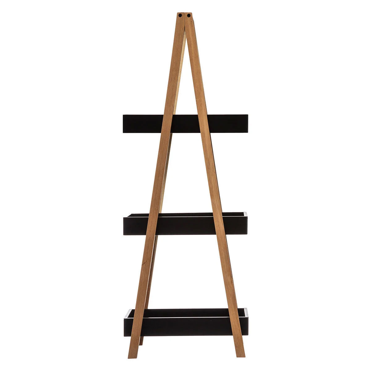 Ραφιέρα δαπέδου σε μαύρο χρώμα με 3 ορόφους για να οργανώσετε τις πετσέτες, τα καλλυντικά ή άλλα μικροπράγματα του μπάνιου σας. Είναι κατασκευασμένη από bamboo και MDF. *Το προϊόν έρχεται αμοντάριστο.*