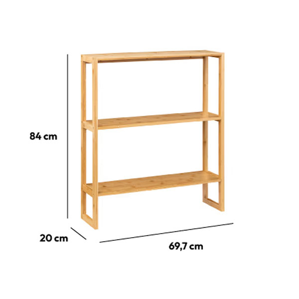Ραφιέρα δαπέδου σε φυσικό χρώμα ξύλου για να οργανώσετε τις πετσέτες, τα καλλυντικά ή άλλα μικροπράγματα του μπάνιου σας. Σχεδιασμένο ώστε να μην καταλαμβάνει πολύ χωρό και να διατηρεί τακτοποιημένα τα πράγματά σας. Το προϊόν έρχεται αμοντάριστο και συναρμολογείται βάσει οδηγιών.