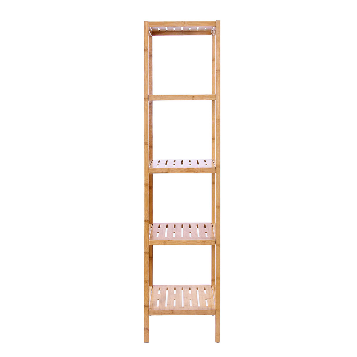 Ραφιέρα δαπέδου σε φυσική απόχρωση ξύλου από την εταιρεία Songmics. Ιδανική για το μπάνιο, το σαλόνι, τη βεράντα ή όπου αλλού θέλετε να οργανώσετε τα πράγματα σας. Το προϊόν έρχεται αμοντάριστο και συναρμολογείται βάσει οδηγιών.