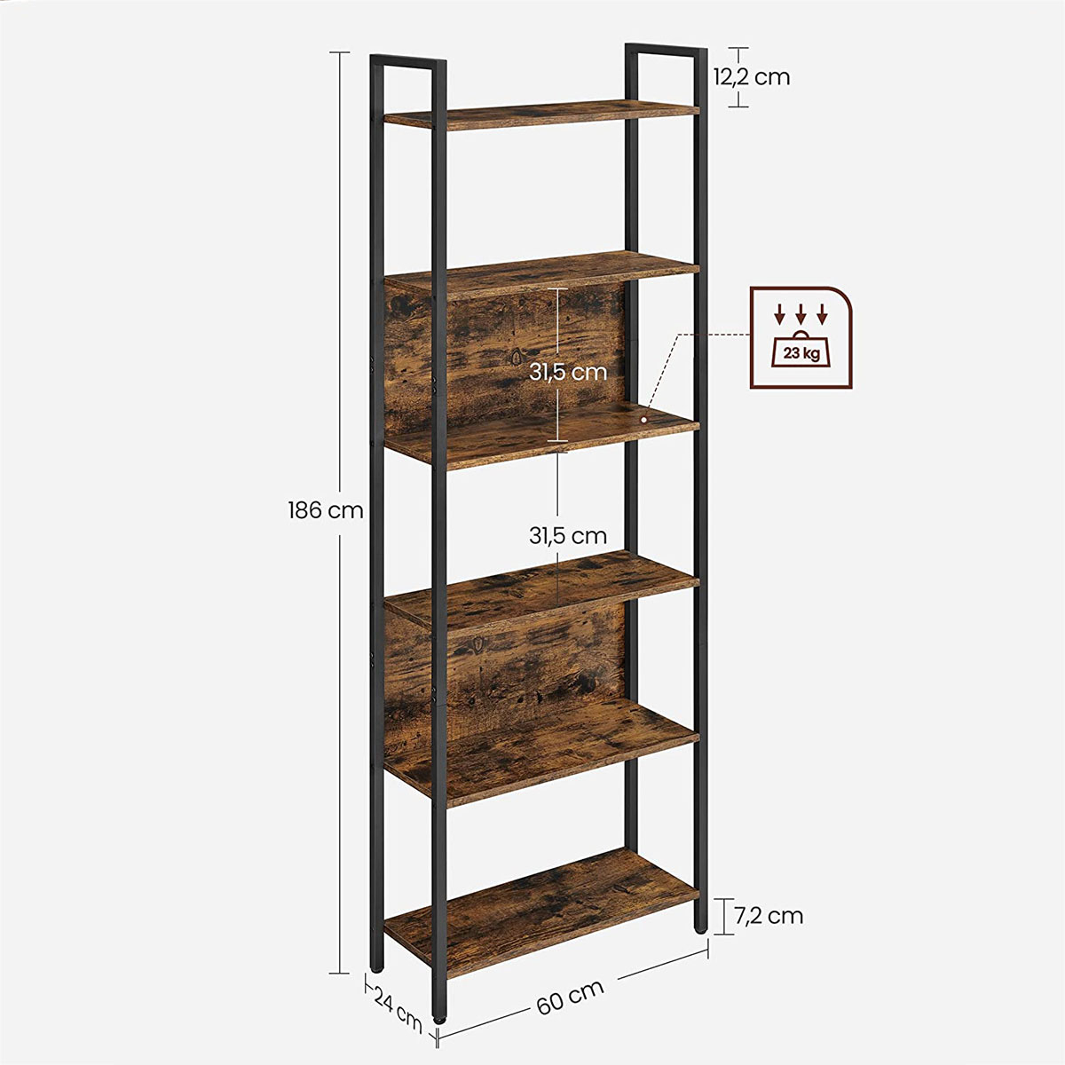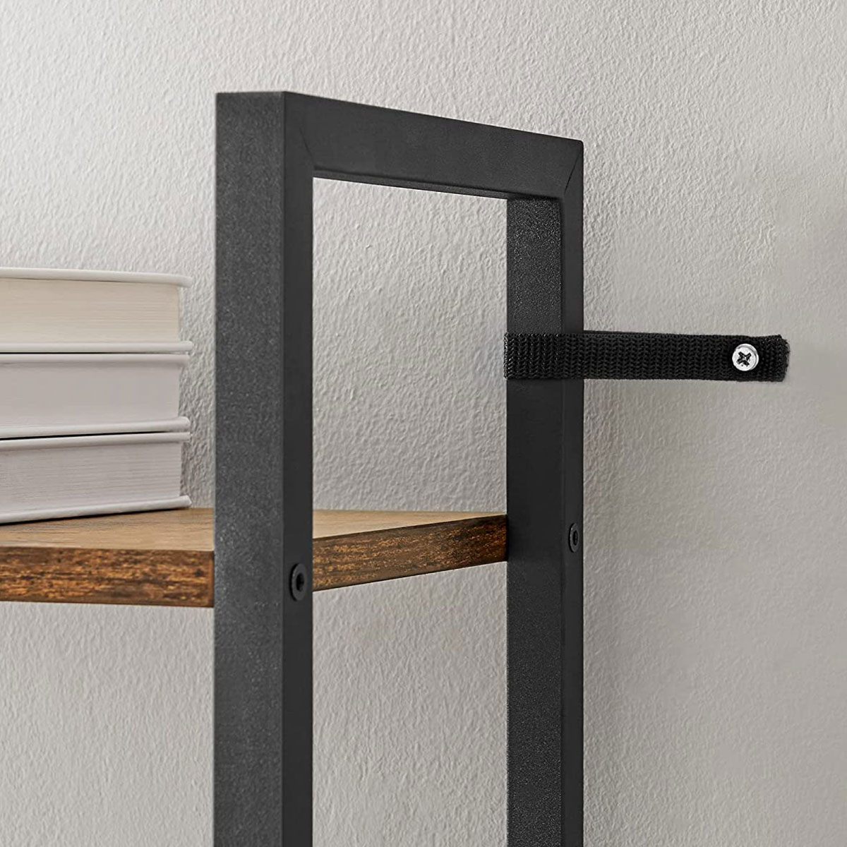 Επιδαπέδια ραφιέρα από την εταιρεία Vasagle σε καφέ ρουστίκ χρώμα με μαύρο σκελετό. Ιδανική για να τοποθετηθεί σε οποιοδήποτε μέρος του σπιτιού σας και να δώσει μοντέρνο ύφος, τακτοποιώντας παράλληλα τα μικροπράγματα σας, τα βιβλία σας ή ό,τι άλλο θέλετε. Το προϊόν έρχεται αμοντάριστο και συναρμολογείται βάσει οδηγιών.