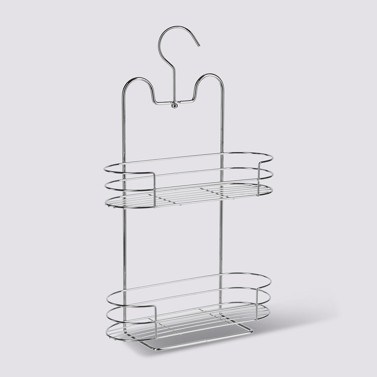 Ραφιέρα ιδανική για χρήση στην ντουζιέρα. Είναι κατασκευασμένη από ανοξείδωτο υλικό σε ασημί χρώμα. Έχει δύο ράφια για να τακτοποιήσετε όλα τα απαραίτητα αντικείμενα του μπάνιου σας. Μπορεί να κρεμαστεί όπου θέλετε με το άγκιστρο που διαθέτει το πάνω μέρος.