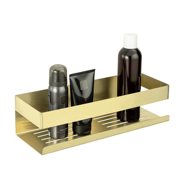 Ράφι για το μπάνιο σε χρυσό χρώμα από την γερμανική εταιρεία Wenko. Είναι κατασκευασμένο από ανοξείδωτο υλικό, πολύ ανθεκτικό στην σκουριά. Η βάση έχει ανοίγματα για αποστράγγιση. Διαθέτει ειδικό αυτοκόλλητο TurboLoc για γρήγορη και εύκολη εγκατάσταση χωρίς βίδωμα ή τρύπημα. Απλώς αφαιρέστε το προστατευτικό φιλμ από το αυτοκόλλητο, τοποθετήστε το στην επιθυμητή θέση και πιέστε το. Εξαιρετικά σταθερό κράτημα σε όλες τις λείες επιφάνειες. Μπορεί να αφαιρεθεί χωρίς να αφήσει υπολείμματα.