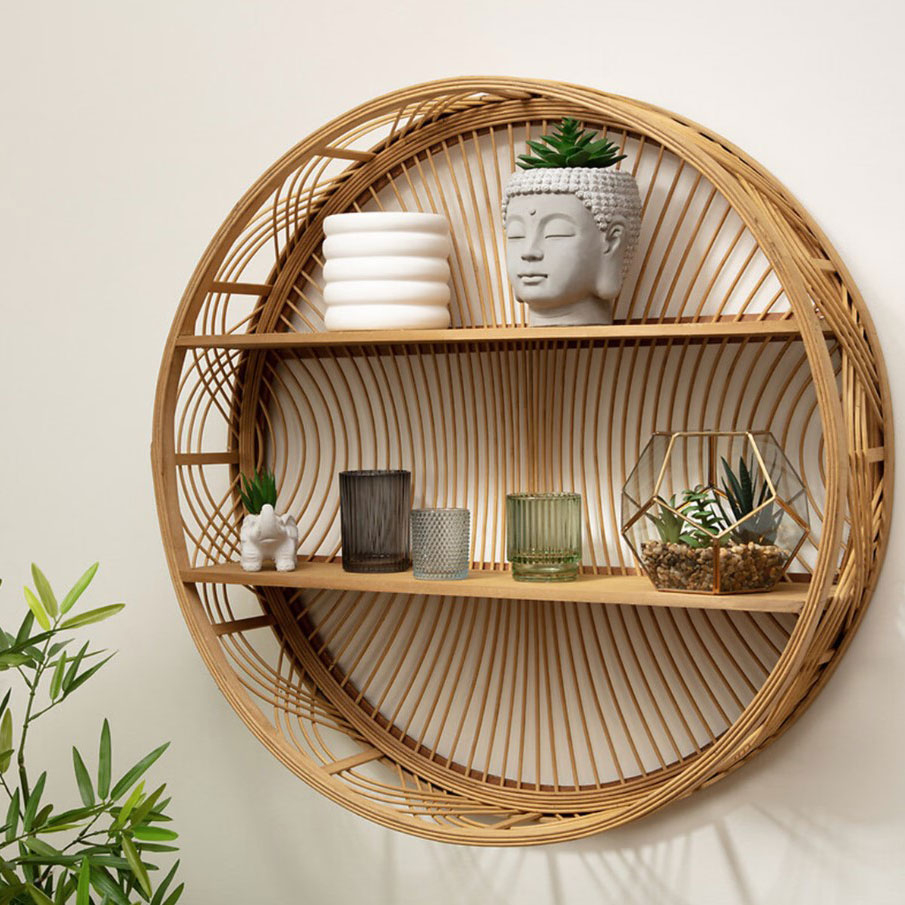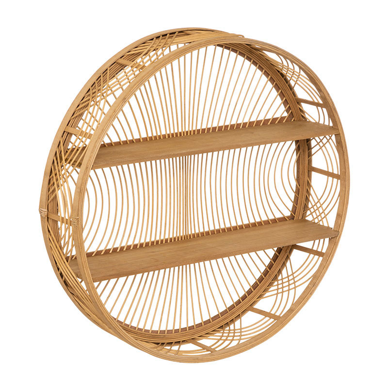 Στρογγυλή ραφιέρα τοίχου με μοντέρνο ύφος σε μπεζ χρώμα και διάτρητο σχέδιο. Διαθέτει ράφια για να τοποθετήσετε τα αντικείμενα σας. Κατάλληλη για όλους τους χώρους του σπιτιού ή του γραφείου. *Οι βίδες στερέωσης δεν περιλαμβάνονται.*
