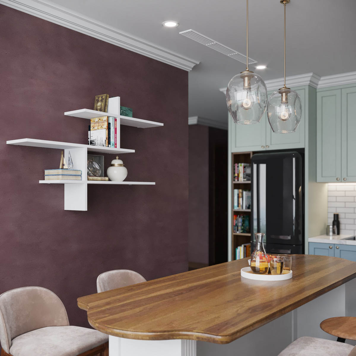 Ραφιέρα τοίχου 6 θέσεων σε λευκό χρώμα. Είναι κατασκευασμένη από μοριοσανίδα πάχους 18mm επενδυμένη με μελαμίνη. Ιδανική για να γεμίσει και να διακοσμήσει έναν άδειο τοίχο σε οποιονδήποτε χώρο του σπιτιού. Μέγιστο βάρος αντοχής: 10 kg *Το προϊόν έρχεται αμοντάριστο και συναρμολογείται βάσει οδηγιών.*