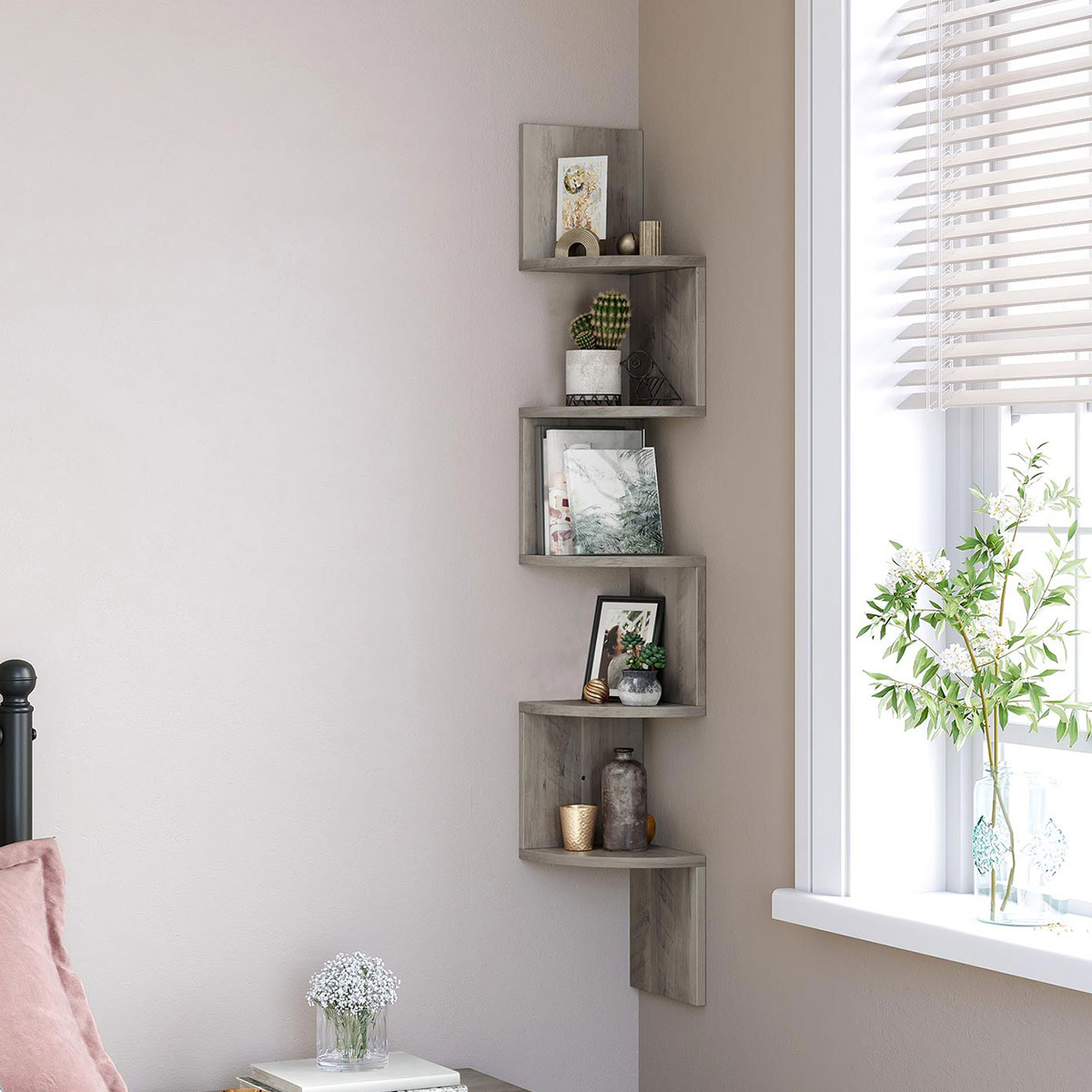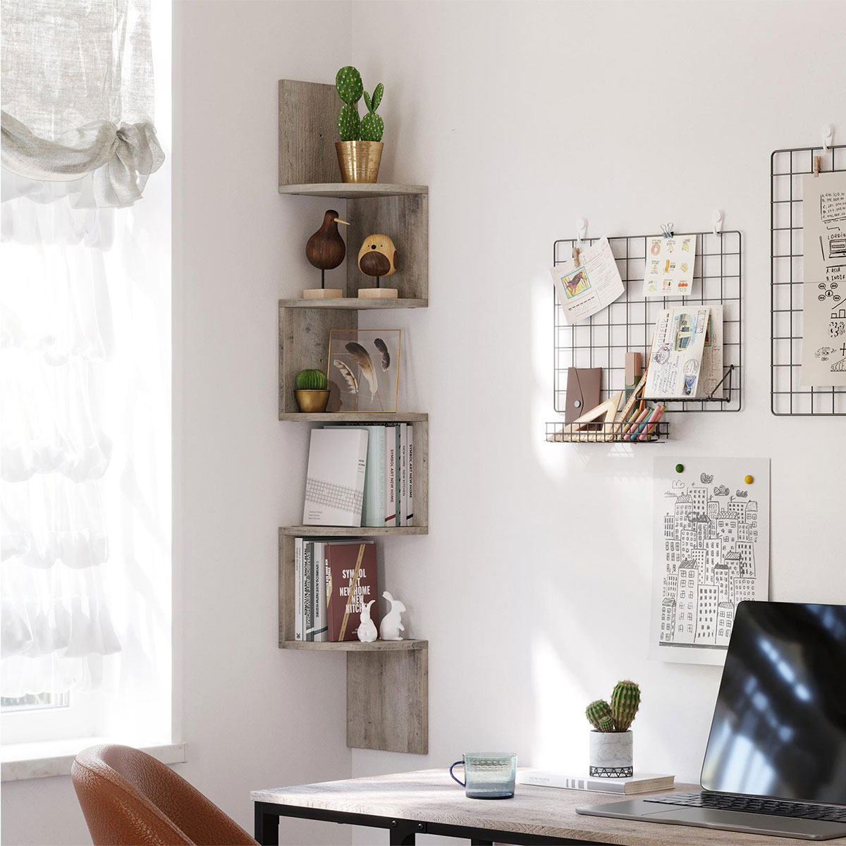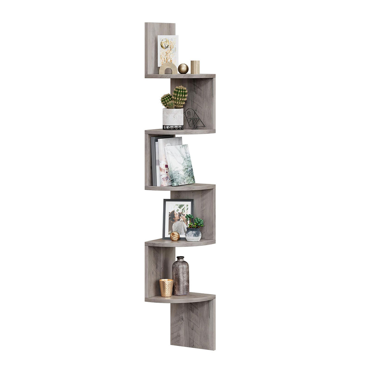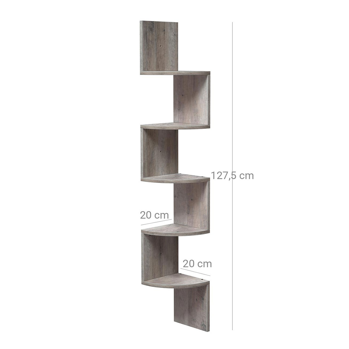 Γωνιακή βιβλιοθήκη τοίχου σε γκρι χρώμα από την εταιρεία Vasagle. Ιδανική για να τοποθετηθεί σε οποιοδήποτε σημείο του σπιτιού και να δώσει μοντέρνο ύφος, τακτοποιώντας παράλληλα τα μικροπράγματα σας, τα βιβλία σας ή ό,τι άλλο θέλετε. Μπορείτε να την τοποθετήσετε επίσης στην κουζίνα σας για να δημιουργήσετε επιπλέον χώρο για τα βάζα και τα μπαχαρικά. Το προϊόν έρχεται αμοντάριστο και συναρμολογείται βάσει οδηγιών.