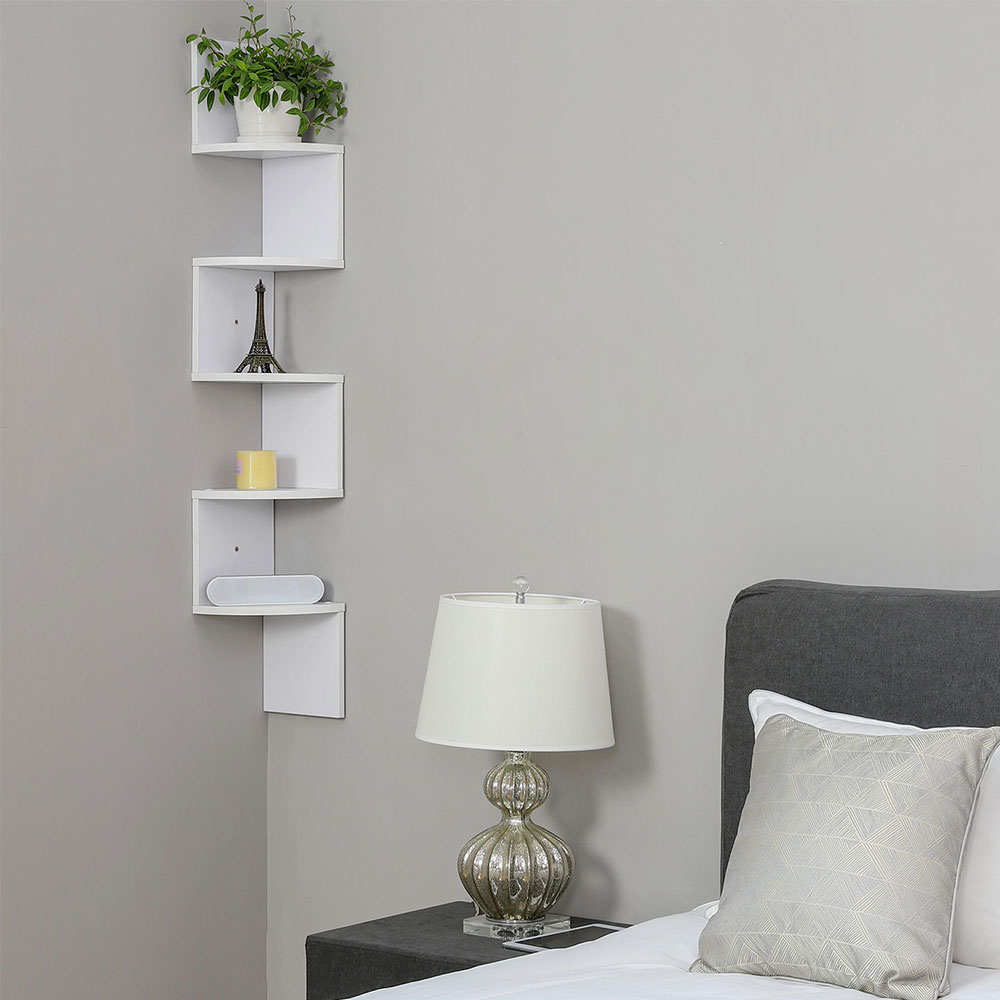 Γωνιακή βιβλιοθήκη τοίχου σε λευκό χρώμα από την εταιρεία Vasagle. Ιδανική για να τοποθετηθεί σε οποιοδήποτε σημείο του σπιτιού και να δώσει μοντέρνο ύφος, τακτοποιώντας παράλληλα τα μικροπράγματα σας, τα βιβλία σας ή ό,τι άλλο θέλετε. Μπορείτε να την τοποθετήσετε επίσης στην κουζίνα σας για να δημιουργήσετε επιπλέον χώρο για τα βάζα και τα μπαχαρικά. Το προϊόν έρχεται αμοντάριστο και συναρμολογείται βάσει οδηγιών.