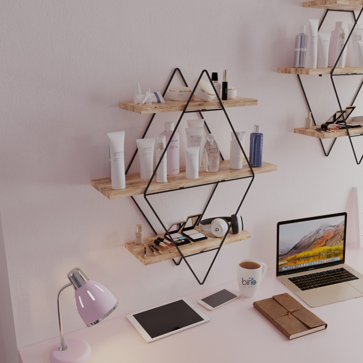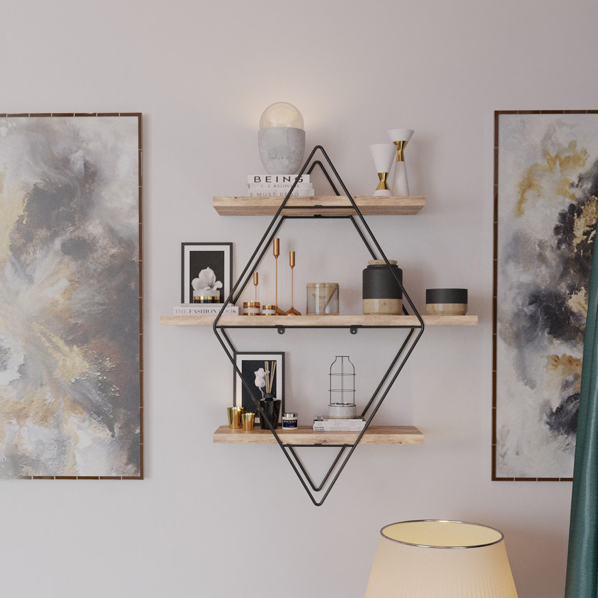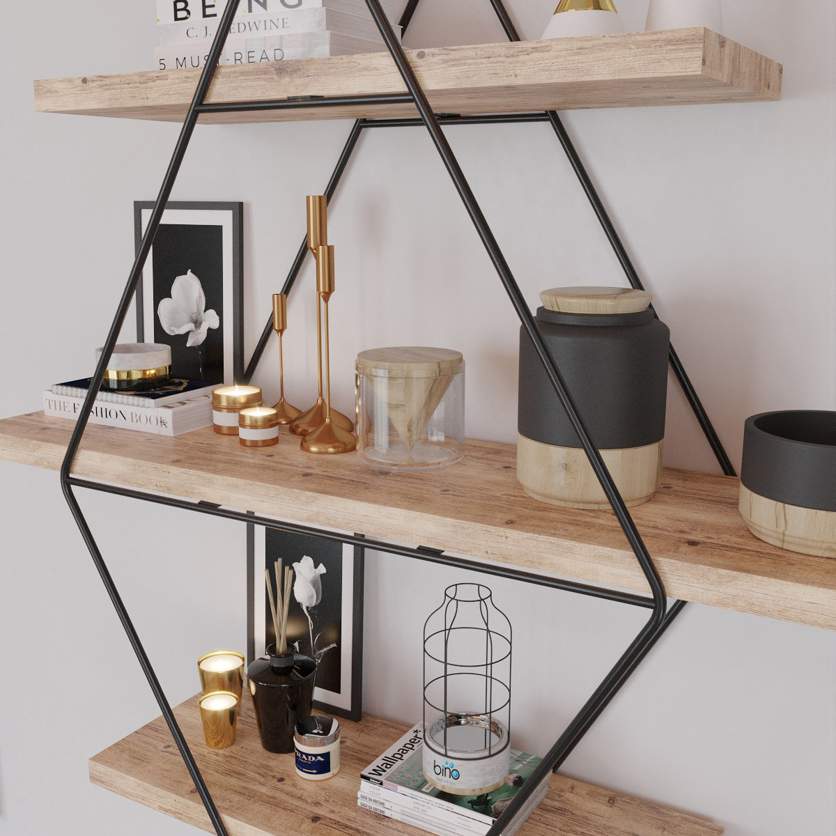 Ραφιέρα τοίχου με μοντέρνο σχεδιασμό σε φυσική απόχρωση ξύλου με μαύρες λεπτομέρειες. Κατασκευασμένη από φυσικό ξύλο που προσφέρει ανθεκτικότητα. Κατάλληλη για όλους τους χώρους του σπιτιού. Λόγω του φυσικού υλικού, η απόχρωση του ξύλου μπορεί να διαφέρει από την φωτογραφία. Περιλαμβάνονται τα υλικά τοποθέτησης.