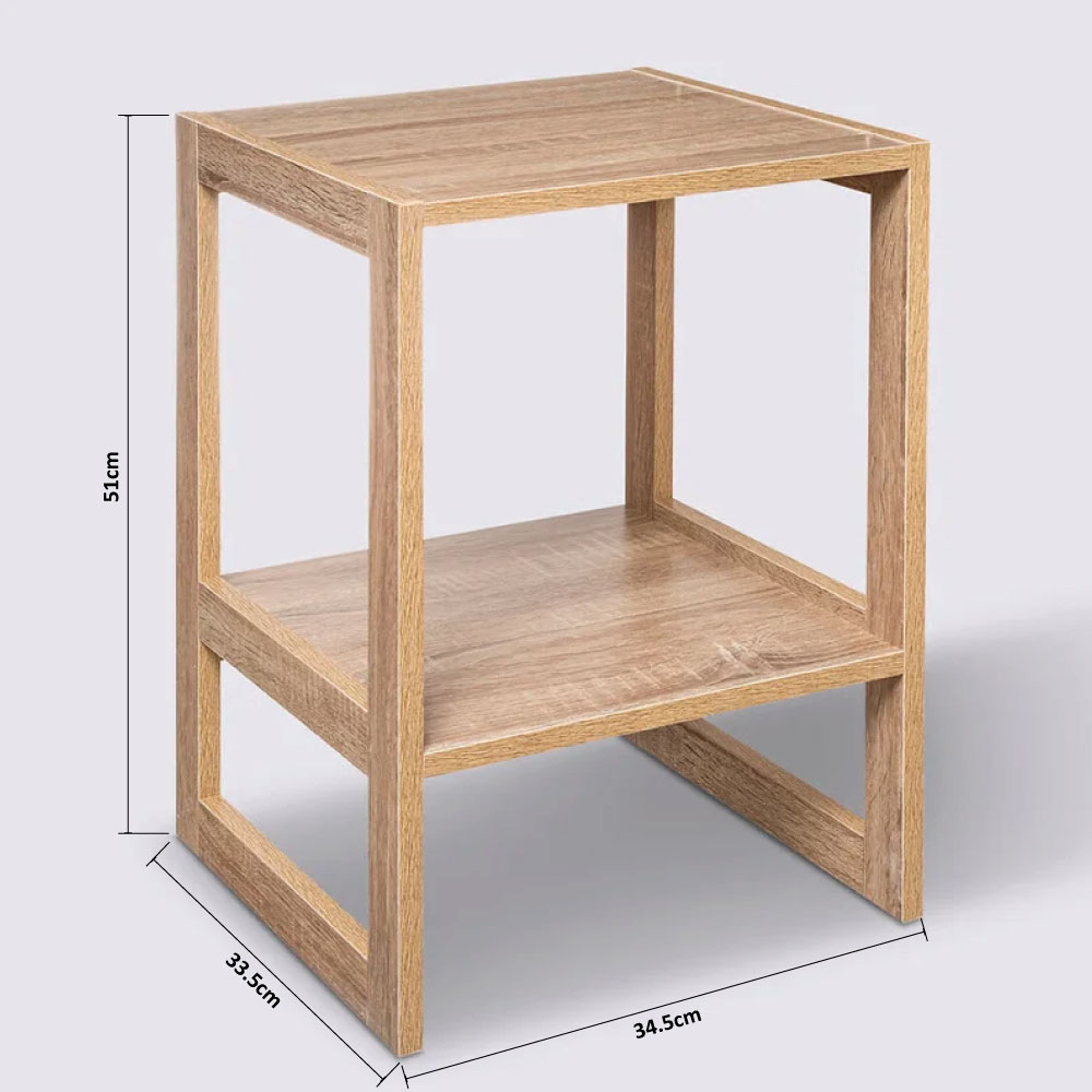 Επιδαπέδια ραφιέρα σε φυσικό χρώμα ξύλου με 2 θέσεις που μπορείτε να τοποθετήσετε κουτιά αποθήκευσης για να οργανώσετε τα πράγματά σας ή να τα αφήσετε κενά. Έχει υποδοχές για να τοποθετήσετε άλλη μια ίδια από πάνω και να δημιουργήσετε μια πιο ψηλή ραφιέρα ή βιβλιοθήκη. Το προϊόν έρχεται αμοντάριστο και συναρμολογείται βάσει οδηγιών.