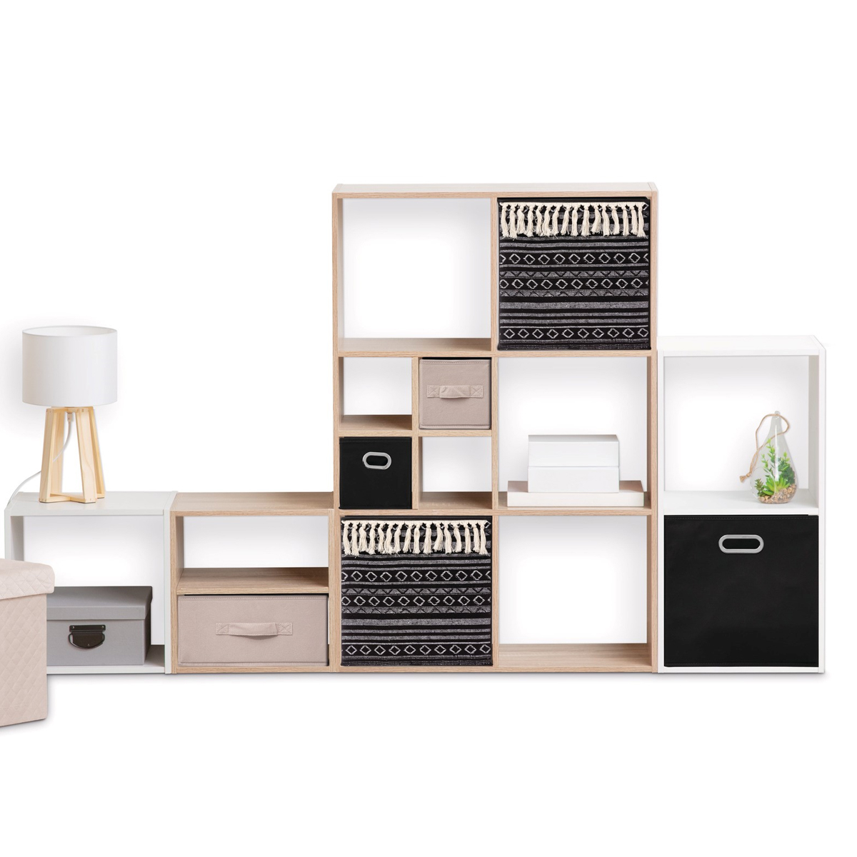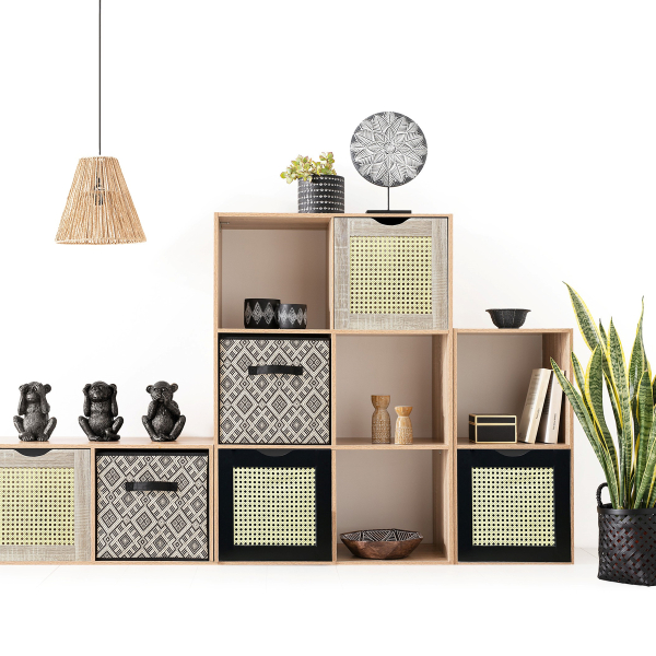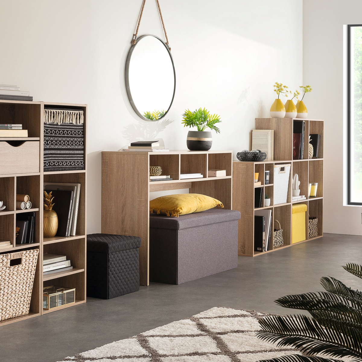Βιβλιοθήκη δαπέδου σε φυσική απόχρωση ξύλου κατάλληλη για να οργανώσετε οποιοδήποτε χώρο. Διαθέτει χωρίσματα μέσα στα οποία μπορείτε να τοποθετήσετε καλάθια ή κουτιά για να φυλάξετε τα πράγματά σας ή τα παιχνίδια του παιδιού. Το προϊόν έρχεται αμοντάριστο και συναρμολογείται βάσει οδηγιών.