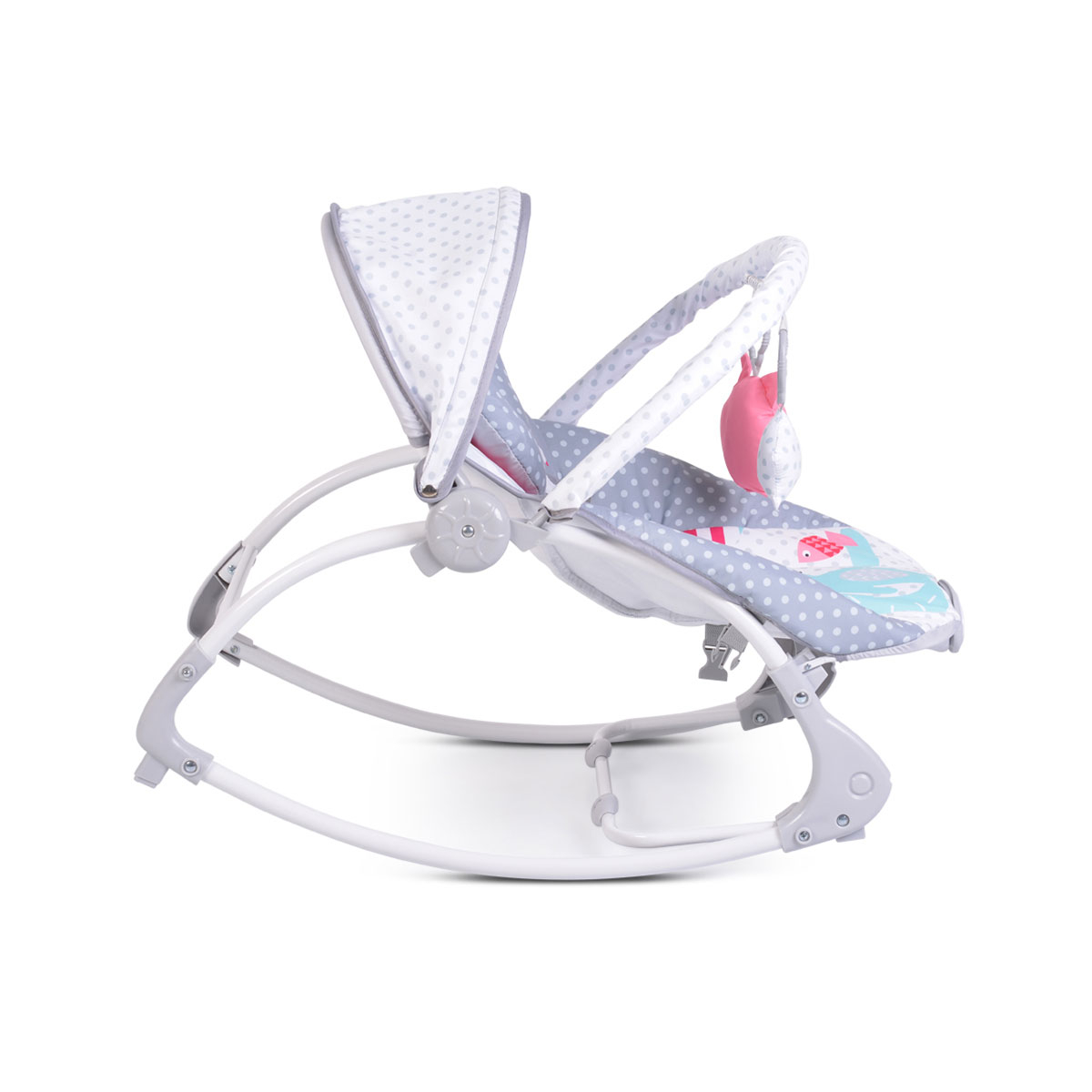 Ρηλάξ Lovely Forest από την εταιρεία Moni σε γκρι χρώμα με ροζ-γαλάζιες λεπτομέρειες. Είναι κατάλληλο για νεογέννητα και μωρά μέχρι 9kg. Απαιτείται μερική συναρμολόγηση.