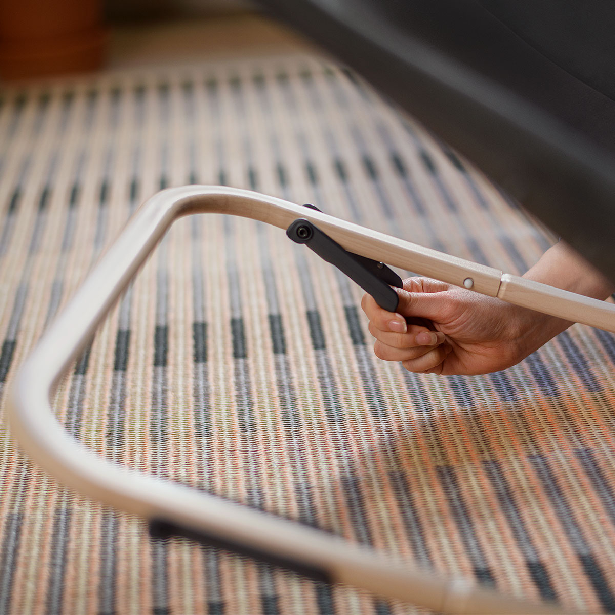 - Τα μεταλλικά και πλαστικά τμήματα μπορούν να καθαριστούν με υγρό πανί. Για την αποφυγή σκουριάς στα μεταλλικά τμήματα, στεγνώστε τα αμέσως μετά από επαφή με νερό. Η επένδυση του καθίσματος είναι αφαιρούμενη και για τον ασφαλή καθαρισμό συμβουλευτείτε την ετικέτα οδηγιών φροντίδας του προϊόντος. Απαγορεύεται σε όλα τα τμήματα η χρήση διαλυτικών ουσιών, το στεγνό καθάρισμα, το στύψιμο, το σιδέρωμα, το στεγνωτήριο, οι λευκαντικές ουσίες και το χλώριο.