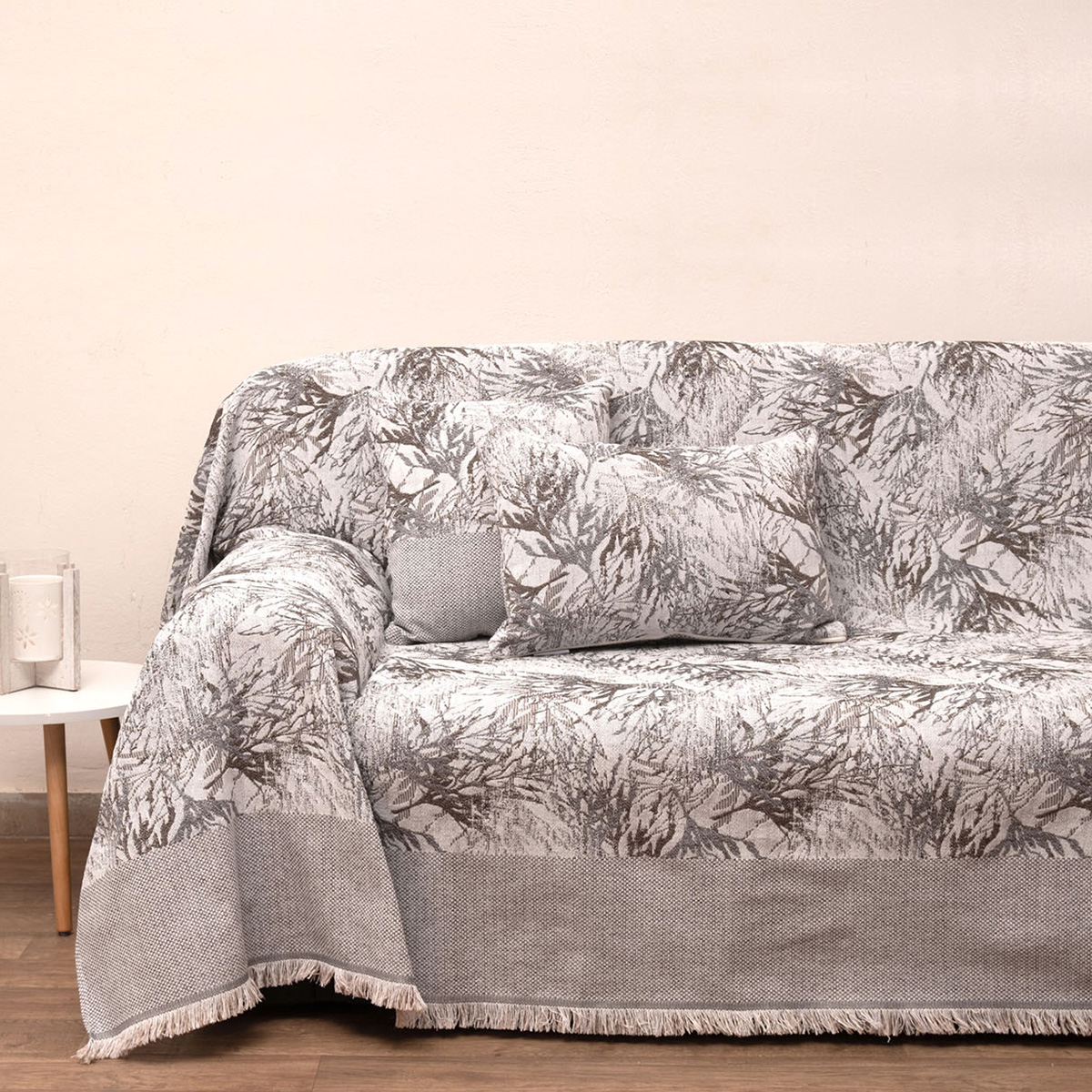 Ριχτάρι για τον διθέσιο καναπέ σε μπεζ χρώμα, με εκρού λεπτομέρειες και μοντέρνο σχέδιο από την εταιρία Anna Riska. Είναι κατασκευασμένο από 100% βαμβακερό Jacquard ύφασμα που το καθιστά ιδανικό για τους χειμερινούς μήνες. Διαθέτει διακοσμητικά κρόσια στο τελείωμα. Συνδυάστε το με τα υπόλοιπα είδη της ίδιας σειράς για ένα ολοκληρωμένο αποτέλεσμα.