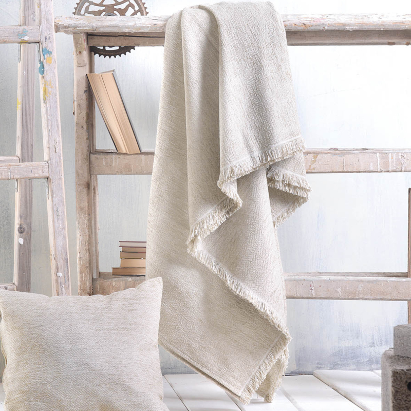 Ριχτάρι για διθέσιο καναπέ από την εταιρεία Rythmos σε μπεζ χρώμα και κρόσια στο τελείωμα. Το ύφασμα είναι από 50% chenille, 25% βαμβάκι και 25% polyester που κάνει το ριχτάρι ιδανικό για τους χειμερινούς μήνες του χρόνου. Συνδυάστε το με τις υπόλοιπες διαστάσεις του ίδιου σχεδίου για ένα ολοκληρωμένο αποτέλεσμα.