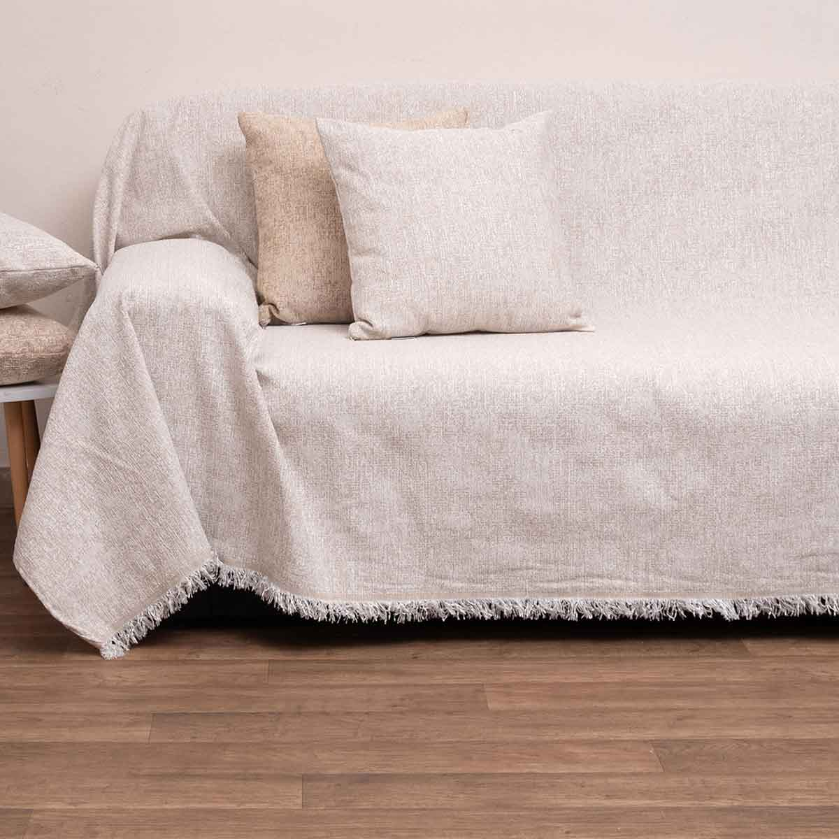 Ριχτάρι για τον διθέσιο καναπέ σε εκρού χρώμα και κρόσσια στο τελείωμα από την εταιρεία Viopros. Είναι κατασκευασμένο από 100% chenille με ζακάρ ύφανση που το καθιστά ιδανικό για τους χειμερινούς μήνες. Διαθέτει διακοσμητικά κρόσσια στο τελείωμα. Συνδυάστε το με τα υπόλοιπα είδη της ίδιας σειράς για ένα ολοκληρωμένο αποτέλεσμα.