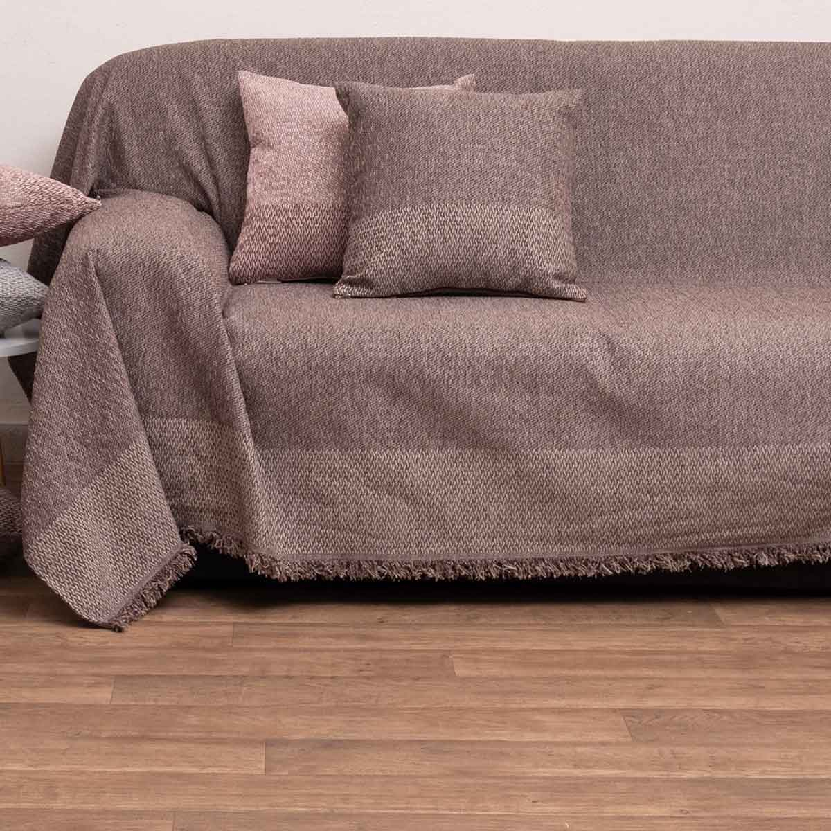 Ριχτάρι για τον διθέσιο καναπέ σε καφέ χρώμα και κρόσσια στο τελείωμα από την εταιρεία Viopros. Είναι κατασκευασμένο από 100% chenille με ζακάρ ύφανση που το καθιστά ιδανικό για τους χειμερινούς μήνες. Διαθέτει διακοσμητικά κρόσσια στο τελείωμα. Συνδυάστε το με τα υπόλοιπα είδη της ίδιας σειράς για ένα ολοκληρωμένο αποτέλεσμα.