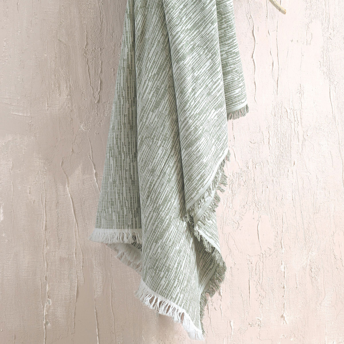 Ριχτάρι για τον διθέσιο καναπέ σε πράσινο χρώμα, με εκρού λεπτομέρειες και μοντέρνο σχέδιο από την εταιρεία Rythmos. Είναι κατασκευασμένο από ζακάρ ύφασμα σύνθεσης 80% βαμβάκι και 20% polyester, που το καθιστά ιδανικό για όλους τους μήνες του χρόνου. Διαθέτει κρόσσια στο τελείωμα. Συνδυάστε το με τα υπόλοιπα είδη της ίδιας σειράς για ένα αρμονικό αποτέλεσμα στο σαλόνι σας.