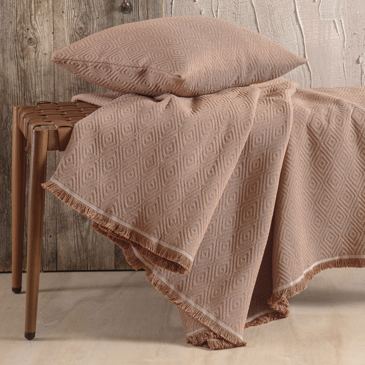 Ριχτάρι για τον τετραθέσιο καναπέ σε καφέ χρώμα, με ανάγλυφο μοντέρνο σχέδιο από την εταιρεία Rythmos. Είναι κατασκευασμένο από ζακάρ ύφασμα σύνθεσης 80% βαμβάκι και 20% polyester, που το καθιστά ιδανικό για όλους τους μήνες του χρόνου. Διαθέτει κρόσσια στο τελείωμα. Συνδυάστε το με τα υπόλοιπα είδη της ίδιας σειράς για ένα αρμονικό αποτέλεσμα στο σαλόνι σας.