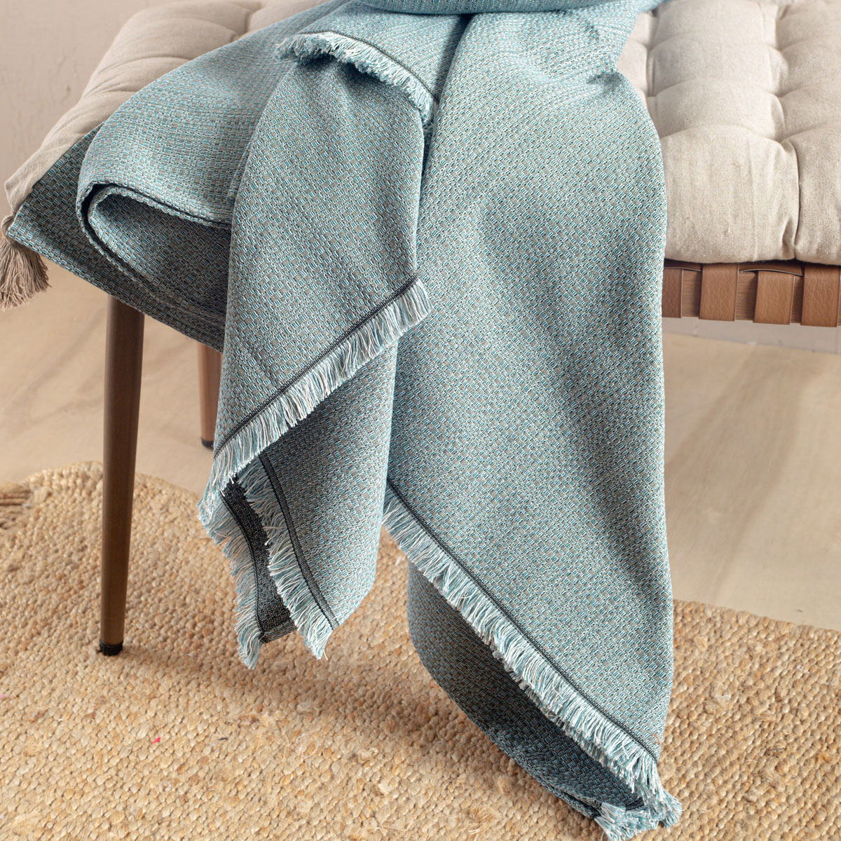 Ριχτάρι για τον τετραθέσιο καναπέ σε βεραμάν αποχρώσεις με μοντέρνο σχέδιο από την εταιρεία Rythmos. Είναι κατασκευασμένο από ζακάρ ύφασμα σύνθεσης 80% βαμβάκι και 20% polyester, που το καθιστά ιδανικό για όλους τους μήνες του χρόνου. Διαθέτει κρόσσια στο τελείωμα. Συνδυάστε το με τα υπόλοιπα είδη της ίδιας σειράς για ένα αρμονικό αποτέλεσμα στο σαλόνι σας.