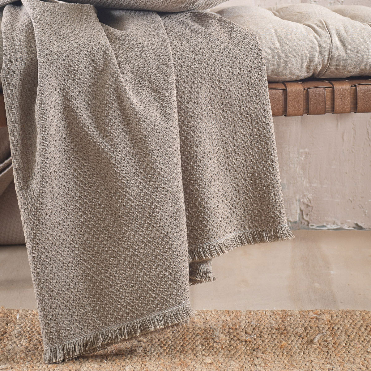 Ριχτάρι για τον τετραθέσιο καναπέ σε καφέ χρώμα με μοντέρνο σχέδιο από την εταιρεία Rythmos. Είναι κατασκευασμένο από ζακάρ ύφασμα σύνθεσης 80% βαμβάκι και 20% polyester, που το καθιστά ιδανικό για όλους τους μήνες του χρόνου. Διαθέτει κρόσσια στο τελείωμα. Συνδυάστε το με τα υπόλοιπα είδη της ίδιας σειράς για ένα αρμονικό αποτέλεσμα στο σαλόνι σας.
