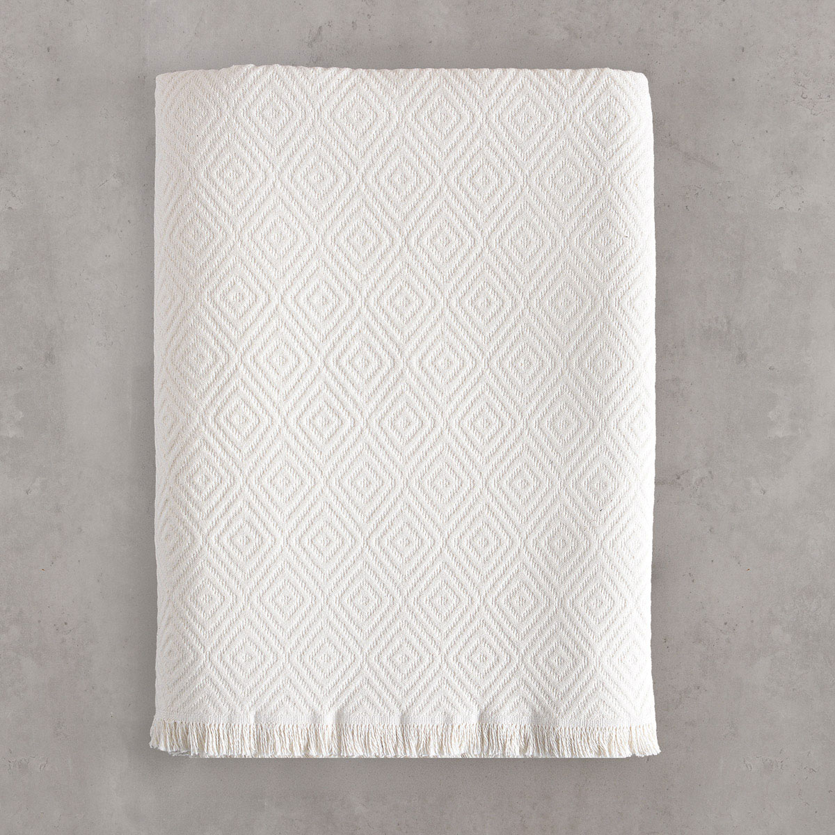Ριχτάρι για τον τριθέσιο καναπέ σε εκρού χρώμα, με ανάγλυφο μοντέρνο σχέδιο από την εταιρεία Rythmos. Είναι κατασκευασμένο από ζακάρ ύφασμα σύνθεσης 80% βαμβάκι και 20% polyester, που το καθιστά ιδανικό για όλους τους μήνες του χρόνου. Διαθέτει κρόσσια στο τελείωμα. Συνδυάστε το με τα υπόλοιπα είδη της ίδιας σειράς για ένα αρμονικό αποτέλεσμα στο σαλόνι σας.